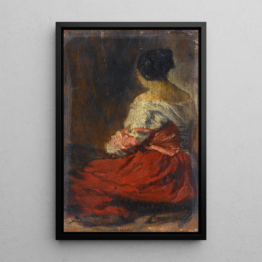 Félix Ziem, peintre français du XIXe siècle, est reconnu pour ses paysages marins et ses scènes de la vie quotidienne. Influencé par le mouvement romantique, il a su capturer la beauté de la nature tout en intégrant des éléments de la vie moderne. Son style, caractérisé par des coups de pinceau dynamiques et une palette riche, reflète une sensibilité unique à son époque. Ziem a voyagé à travers l'Europe et a été inspiré par des lieux tels que Venise, ce qui a enrichi son œuvre. La jupe rouge s'inscrit dans cette tradition, mêlant la beauté des paysages à des scènes de vie vibrantes.