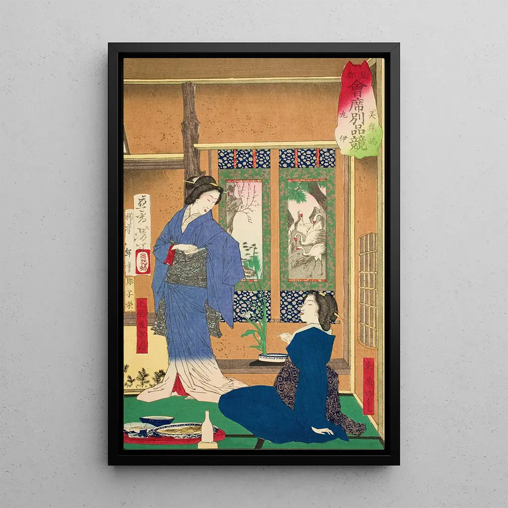 The art print of "The Marui restaurant in Reiganjima" is a decorative piece that will enhance any space. Whether in a living room, office, or dining room, it adds a touch of culture and dynamism. The print quality ensures fidelity to details, allowing full appreciation of Yoshitoshi's work. Its aesthetic appeal, combined with the lively depiction of Japanese conviviality, makes it an ideal choice for those wishing to infuse their interior with a warm and artistic atmosphere.