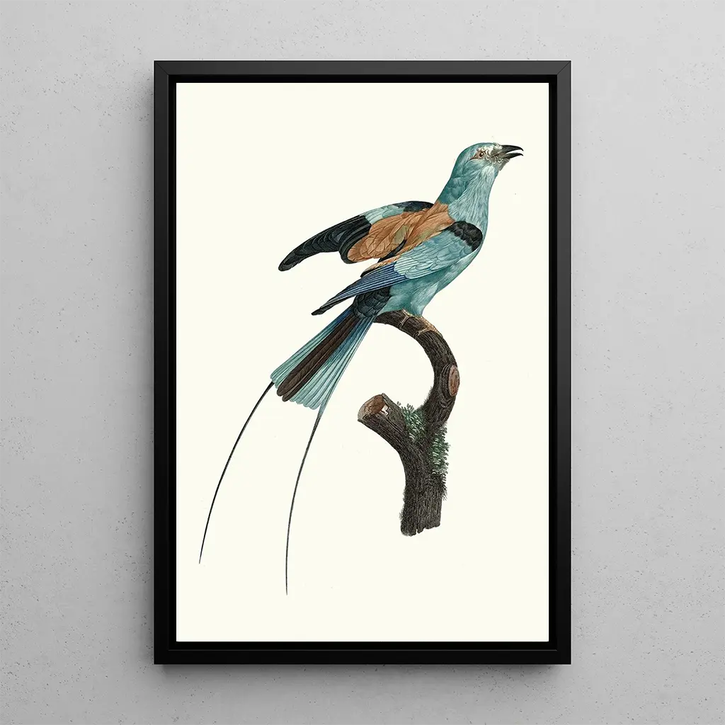 Le Rollier long brins d'Afrique mâle : an exotic splash of colors Dans cette art print du Rollier long brins d'Afrique mâle, Jacques Barraband nous plonge au cœur d'une nature vibrante. Les plumes aux nuances éclatantes de bleu et de vert se mêlent harmonieusement, tandis que le fond délicat évoque un environnement tropical. La technique de l’aquarelle, maîtrisée par l’artiste, confère à l’œuvre une légèreté et une fluidité qui capturent l’essence même de cet oiseau majestueux. L’atmosphère est à la fois sereine et vivante, invitant le spectateur à s’émerveiller devant la beauté de la faune aviaire. Jacques Barraband : un virtuose de l’ornithologie artistique Jacques Barraband, actif au début du XIXe siècle, est reconnu pour ses illustrations ornithologiques d’une précision remarquable. Influencé par les courants naturalistes de son époque, il a su allier art et science, offrant des représentations fidèles des oiseaux. Son travail a été largement diffusé grâce à des ouvrages de référence sur les oiseaux exotiques, contribuant à une meilleure compréhension de la biodiversité. Barraband a laissé un héritage durable, célébré par les amateurs d’art et les ornithologues, faisant de lui une figure incontournable de l'illustration naturaliste. Une acquisition décorative aux multiples atouts La reproduction du Rollier long brins d'Afrique mâle est une pièce décorative idéale pour enrichir votre intérieur. Que ce soit dans un salon, un bureau ou une chambre, ce tableau apporte une touche d’exotisme et de couleur. Sa qualité d’impression garantit une fidélité aux détails de l’œuvre originale, tout en offrant un attrait esthétique indéniable. En choisissant cette toile, vous optez pour une décoration qui évoque la beauté de la nature tout en ajoutant une note artistique à votre espace de vie.