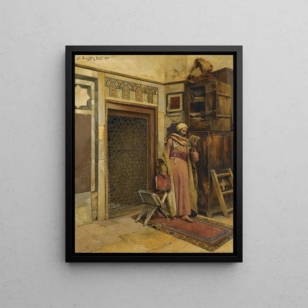 In Le Savant, Ludwig Deutsch immerses us in a universe of wisdom and reflection. This art print depicts a scholar surrounded by ancient books and scientific instruments, symbols of the quest for knowledge. The rich tones and delicate shadows create an atmosphere of serenity and concentration, while the light highlights the details of the objects around him. Every element of the composition seems to tell a story, inviting the viewer to ponder knowledge and intellectual curiosity, making this art print of The Scholar both inspiring and contemplative.