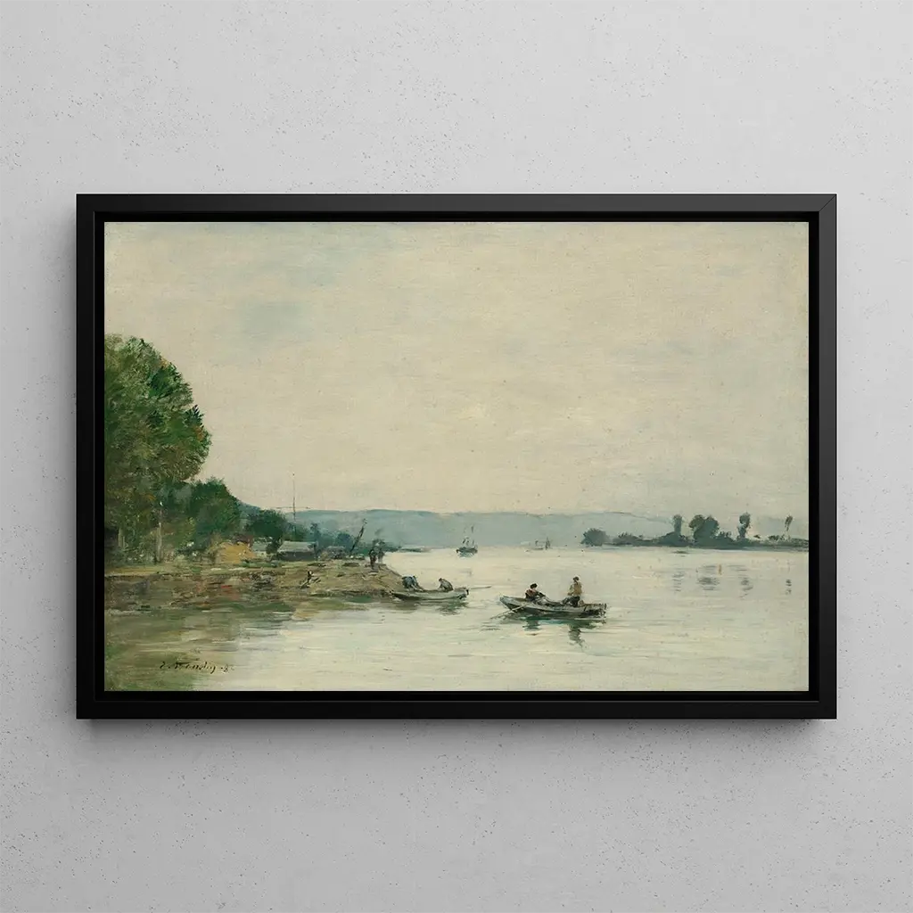 The Seine at Caudebec-en-Caux: a visual poem by the water's edge. In this art print of Eugène Boudin's painting, the Seine unfolds beneath a cloudy sky, where the reflections of light in the water create a poetic atmosphere. The shades of blue and green blend harmoniously, evoking the tranquility of a moment spent by the riverbank. The white sails of the boats add a touch of movement to this peaceful scene, while the trees in the background gently frame the landscape. This piece captures the essence of nature and the beauty of Norman landscapes, inviting the viewer to a contemplative walk. Eugène Boudin: the precursor of Impressionism. Eugène Boudin is a 19th-century French painter, often considered one of the pioneers of Impressionism. Born in Honfleur, he was influenced by the light and landscapes of the Normandy coast, which he translated with a vibrant palette and loose brushwork. Boudin played a key role in the development of plein air painting, encouraging other artists, including Monet, to explore this approach. His work demonstrates a unique sensitivity to nature and light, making him a central figure in the history of French art. A decorative acquisition with multiple benefits. This art print of "The Seine at Caudebec-en-Caux" is perfect for enhancing your living space, whether in a living room, office, or bedroom. Its print quality and faithful reproduction of the original details make it a top decorative choice. By adding this piece to your collection, you bring a touch of serenity and elegance to your interior. Boudin's work invites daydreaming and contemplation, transforming each glance into an escape to the enchanting landscapes of Normandy. Treat yourself to this canvas to enrich your decor with an inspiring and timeless piece of art.