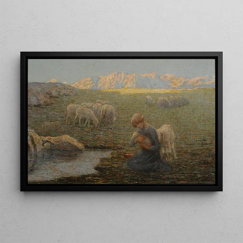 Emilio Longoni, an Italian painter of the 19th century, is recognized for his artistic commitment to the working classes. Influenced by the realist movement, he seeks to capture everyday life and the struggles of ordinary people. Longoni was active during a period of social upheaval in Italy, which shaped his work. His paintings, often imbued with humanity, testify to a sensitivity towards the most disadvantaged. The Sick Sheep fits within this tradition, illustrating not only a moment of life but also a reflection on vulnerability and solidarity. His style, both poignant and accessible, has left a lasting mark in art history.