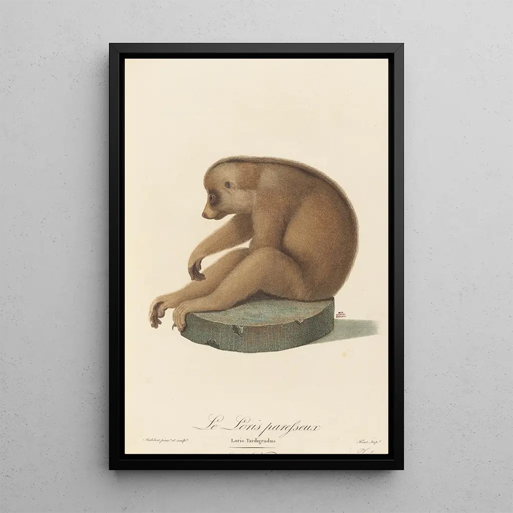 Jean-Baptiste Audebert, an illustrator and naturalist of the early 19th century, masterfully captured the essence of animal species with remarkable finesse. Influenced by the scientific explorations of his time, he traveled through French colonies, immersing himself in the diversity of fauna. His style, characterized by striking realism, allowed him to document little-known species while making them accessible to the general public. The Slow Loris is an iconic art print of his legacy, demonstrating the importance of observation and artistic representation in zoology.