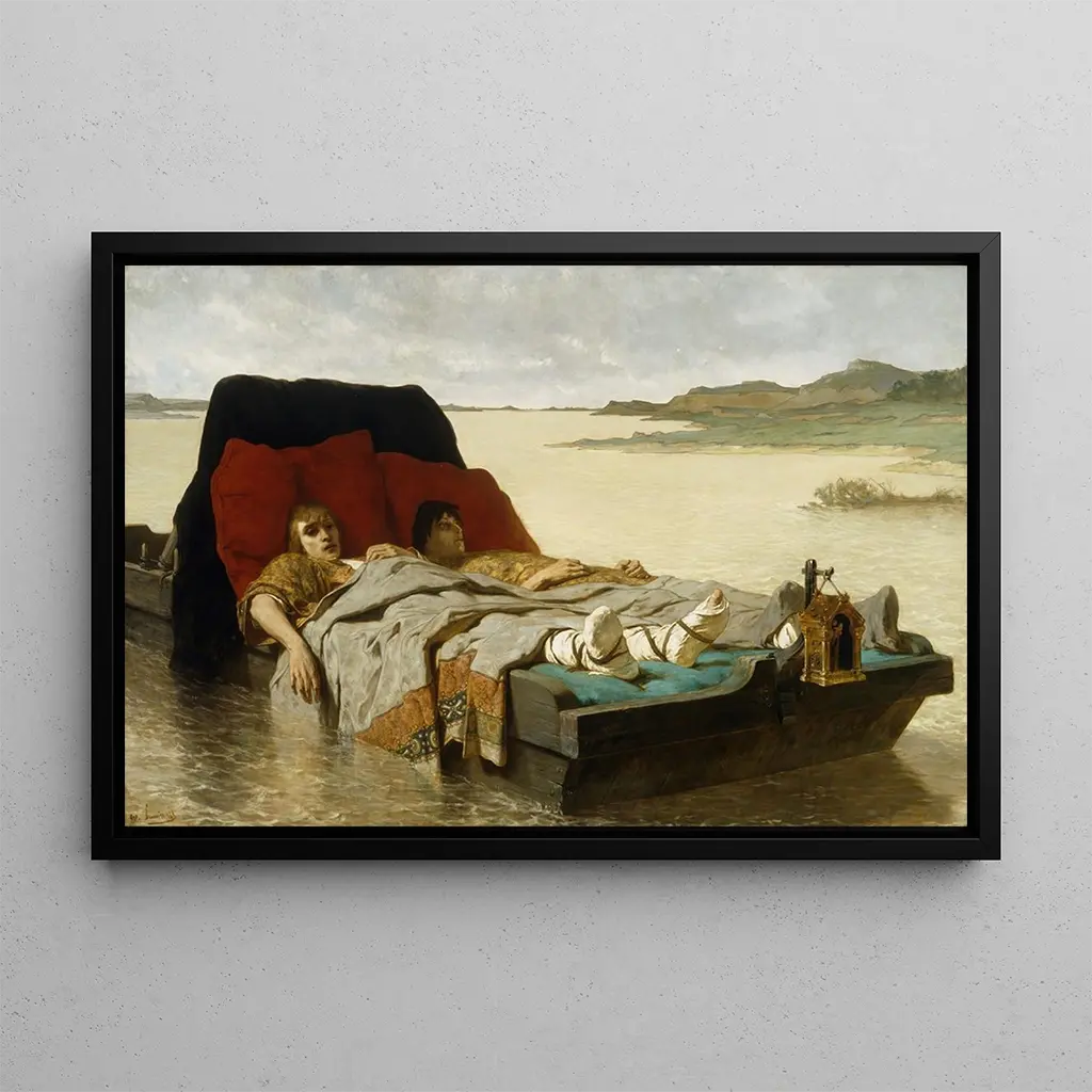 The art print of "Les fils de Clovis II" immerses us in a scene rich in detail and emotion. Évariste Vital Luminais, with his mastery of color and light, manages to capture the intensity of the depicted characters. The vivid hues and striking contrasts bring this work to life, where each figure seems to tell a story. The pictorial technique, blending realism and romanticism, creates a dramatic atmosphere that immediately draws the eye and stimulates the imagination, allowing the viewer to immerse themselves in this bygone era.