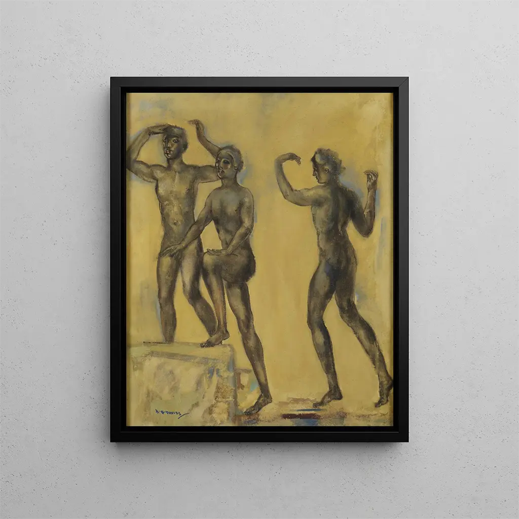 Le style d'Arthur Bowen Davies se distingue par une approche symboliste qui transcende la simple représentation picturale. Dans "Les Sources de Daystar", l'artiste utilise des lignes fluides et des contours délicats pour façonner des silhouettes éthérées, créant ainsi une sensation de légèreté. La palette de couleurs, dominée par des teintes chaudes et dorées, confère à la toile une luminosité presque divine, évoquant la magie des instants crépusculaires. Les éléments naturels, tels que l'eau et la lumière, sont intégrés de manière à suggérer un dialogue entre le visible et l'invisible, entre le tangible et le mystique. Chaque détail, qu'il s'agisse des reflets dans l'eau ou des mouvements gracieux des figures, est soigneusement orchestré pour renforcer le message de communion avec la nature. Cette singularité stylistique fait de l'œuvre un exemple emblématique du tournant artistique du début du XXe siècle, où l'expression des émotions et des idées spirituelles prend le pas sur la représentation réaliste.