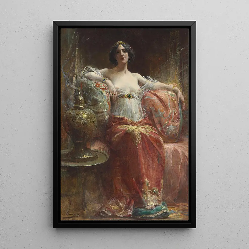 The Sultan's Favorite: a touch of oriental beauty The art print "The Sultan's Favorite" by Henri Adrien Tanoux immerses us in a world rich in colors and emotions. This canvas depicts a court scene where grace and elegance blend with an atmosphere of mystery. The shimmering hues, ranging from dazzling golds to deep reds, create a striking contrast that immediately captures the eye. Tanoux's technique, combining precision and sensitivity, brings to life the details of costumes and faces, making each character unique. The piece invites attentive contemplation, gradually revealing the subtleties of life at a sultan's court. Henri Adrien Tanoux: a master of oriental romanticism Henri Adrien Tanoux, active in the 19th century, was a French painter whose work is part of the romantic movement. Influenced by travels and stories of the Orient, he captured the essence of distant cultures through his paintings. His career was marked by a fascination with exotic scenes and portraits of women, often imbued with sensuality and mystery. Tanoux established himself in the art world thanks to his distinctive style, blending realism and romanticism, and left a lasting legacy that continues to inspire contemporary artists. A decorative acquisition with multiple advantages Choosing the art print "The Sultan's Favorite" is a wise choice to enhance your interior. Whether in a living room, office, or bedroom, this canvas will add a touch of elegance and exoticism to your decor. Its printing quality guarantees fidelity to the colors and details of the original work, offering undeniable aesthetic appeal. By adding this piece to your collection, you are not just decorating; you are also inviting a fascinating story and a warm atmosphere into your living space.