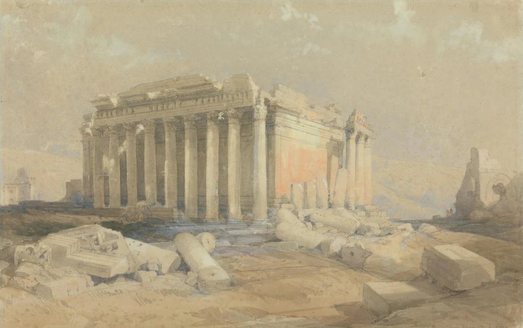 David Roberts, a 19th-century Scottish painter, is renowned for his depictions of landscapes and monuments from the Middle East. An unwavering traveler, he captured the beauty of ancient sites through his works. Influenced by Romanticism, he combined precision and poetry, paying tribute to the architecture and cultures he encountered. His travels in Egypt and Lebanon profoundly influenced his style, making him a pioneer in the genre of Eastern landscape art. The Temple of Baalbek is one of his most famous works, demonstrating his talent and dedication to immortalizing these marvels.