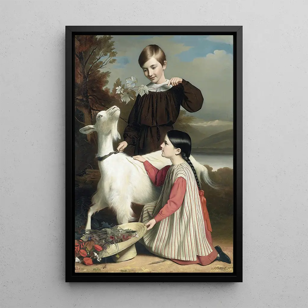 La reproduction de "Les Trois Amis" de Sébastien Straub évoque une scène chaleureuse et conviviale, où l'amitié est mise à l'honneur. Les couleurs vives et les traits expressifs des personnages créent une atmosphère joyeuse et engageante. Cette toile, riche en détails, capte l'essence des relations humaines, illustrant la complicité et la joie partagée entre amis. Les éléments de la nature environnante ajoutent une dimension supplémentaire à cette œuvre, renforçant le sentiment de bonheur et de camaraderie qui s'en dégage.