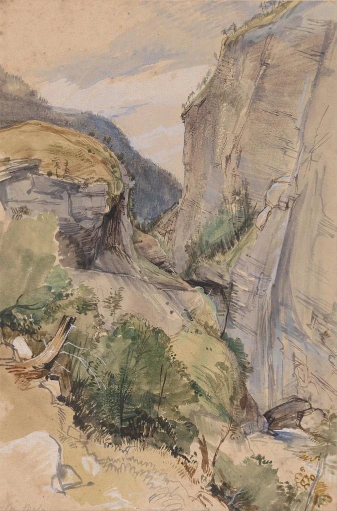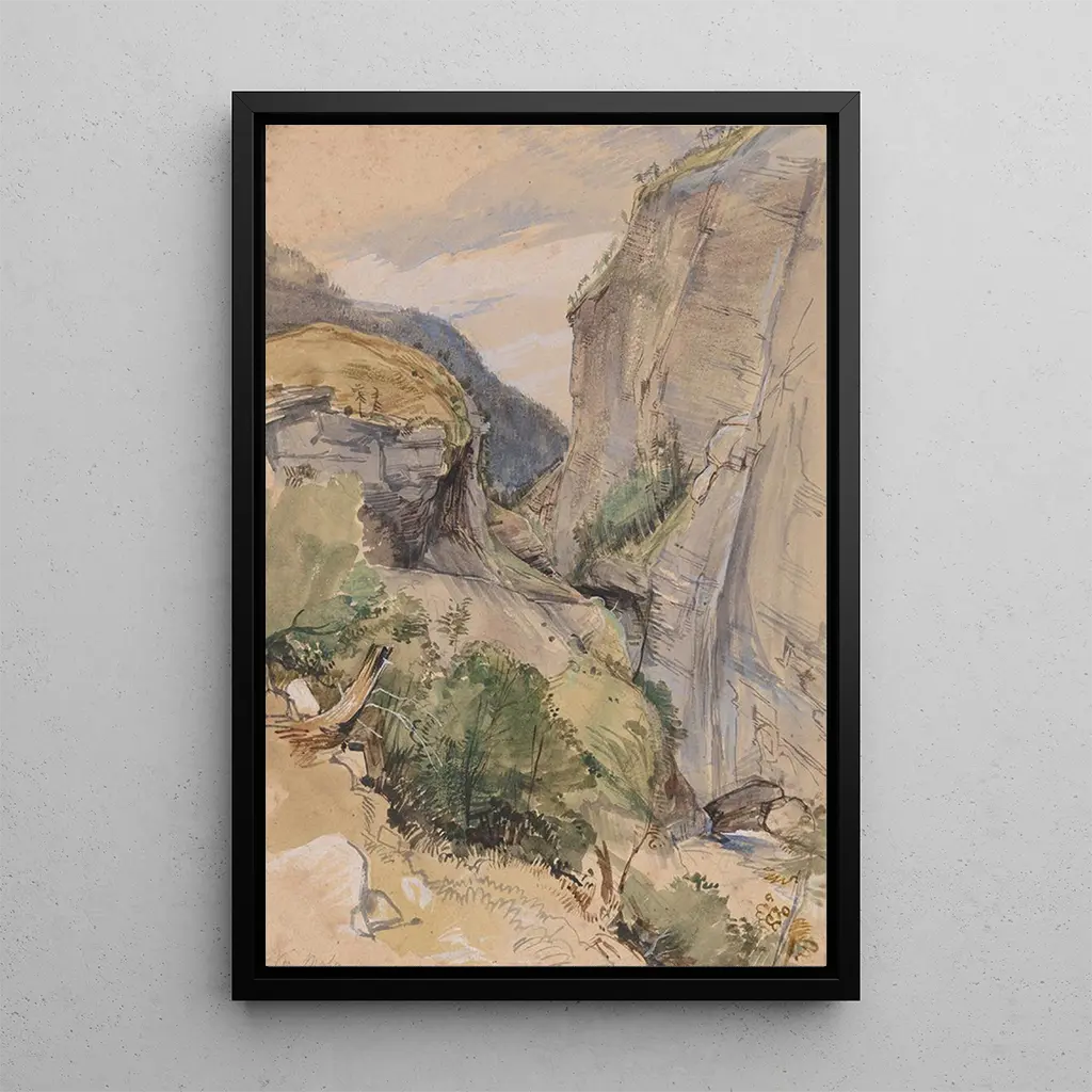 "La Via Mala", an iconic art print by John Frederick Lewis, transports us to a majestic alpine landscape, where wild nature reveals itself with strength and delicacy. The imposing mountains, bathed in light, contrast with the shadows of deep valleys, creating an atmosphere that is both dramatic and serene. The color palette, ranging from vibrant greens to deep grays, evokes the raw beauty of Swiss landscapes. Lewis, with his technical mastery, manages to capture the grandeur of nature while infusing a human dimension into the scene, inviting the viewer to explore this corner of paradise.