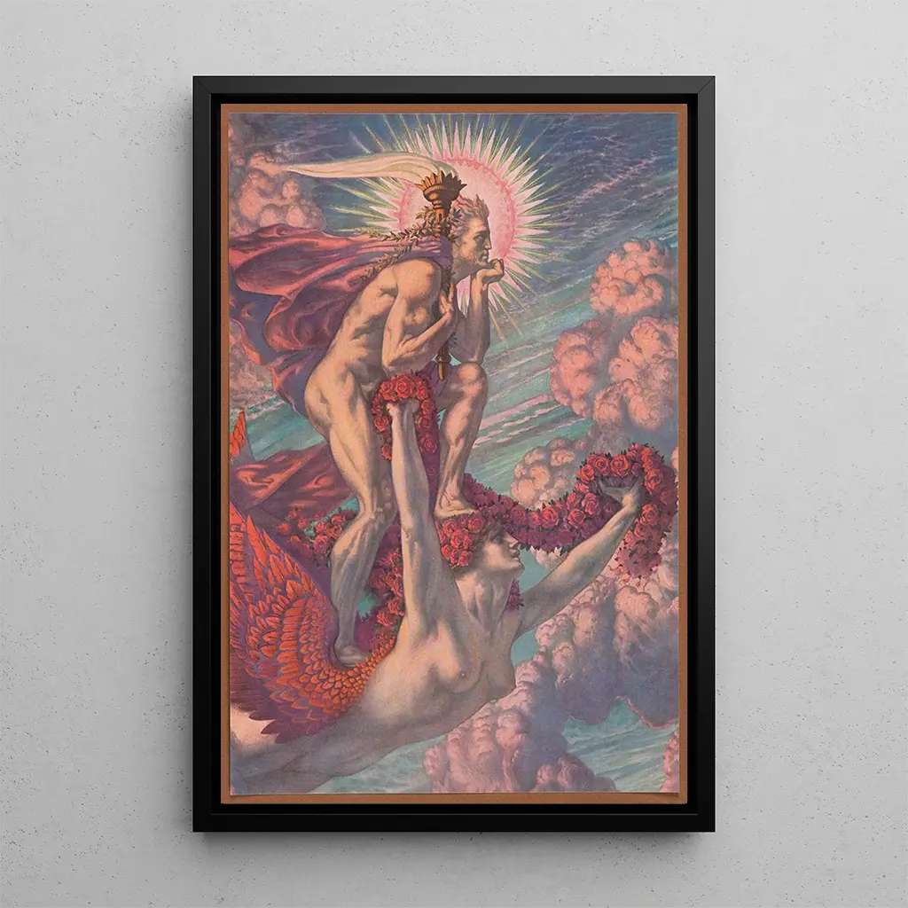 The Victorious Genius: A Celebration of Triumph The Victorious Genius, an iconic art print by Jean Delville, embodies the essence of victory and glory. This canvas, rich in symbolism, depicts a triumphant angel, surrounded by allegorical motifs that evoke light and spiritual elevation. The luminous colors and play of light create an atmosphere that is both dynamic and serene, inviting the viewer to rise above earthly concerns. Delville's technique, blending symbolist and neo-classical influences, gives this art print emotional depth and striking beauty. Jean Delville: an artist at the heart of symbolism Jean Delville, a Belgian painter active at the end of the 19th century and the beginning of the 20th century, is often associated with the symbolist movement. Influenced by artistic currents such as neo-classicism and romanticism, Delville sought to express spiritual and philosophical ideas through his art. The Victorious Genius, created in 1898, is one of his masterpieces, illustrating his commitment to ideal beauty and transcendence. His work has been recognized for its ability to fuse aesthetics with profound concepts, making him an important figure of his time. A decorative reproduction with multiple assets The art print of the Victorious Genius is a decorative piece that will add a touch of elegance and depth to your interior. Whether in a living room, office, or bedroom, this canvas will captivate attention and inspire admiration. Its reproduction quality guarantees exceptional fidelity to the details of the original work, allowing you to feel the full power and beauty of Delville's creation. Treat yourself to this inspiring art print, which will not only embellish your space but also nourish your spirit through its symbolic richness.