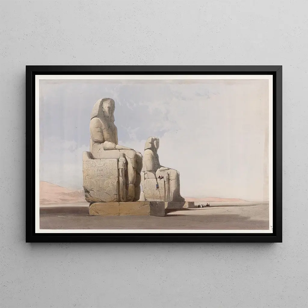 Thèbes December 4, 1838: a journey through time and space The art print of Thèbes December 4, 1838 transports us to the heart of a majestic Egyptian landscape, where ancient ruins stand proudly under a azure sky. David Roberts, with his mastery of the brush, captures the golden light of the rising sun, illuminating the columns and sculptures that tell the story of a vanished civilization. The warm hues and delicate shadows create an atmosphere that is both serene and mysterious, inviting the viewer to contemplate the grandeur of ancient Egypt. Every detail, from the textures of the stones to the nuances of the sky, reflects a deep respect for the subject and a desire to share the timeless beauty of this place. David Roberts: a pioneer of Romanticism and Orientalism David Roberts, a Scottish painter of the 19th century, is renowned for his works that blend Romanticism and Orientalism. An indefatigable traveler, he explored Egypt, Syria, and Palestine, capturing landscapes and monuments with remarkable precision. His works, like Thèbes December 4, 1838, are the result of his personal experiences and admiration for Eastern cultures. Influenced by the great masters of his time, Roberts was able to create a unique style, combining realism and poetry. His work has not only enriched European artistic heritage but also paved the way for a new appreciation of ancient civilizations. A decorative acquisition with multiple assets The art print of Thèbes December 4, 1838, is an ideal decorative choice for any room in the house, whether it be a living room, office, or bedroom. Its printing quality guarantees remarkable fidelity to the colors and details of the original work, allowing you to add a touch of elegance and exoticism to your interior. This painting, with its calming and inspiring atmosphere, draws the eye and sparks curiosity, making each viewing a moment of discovery. By incorporating this canvas into your decor, you give your space an enriching artistic and cultural dimension.