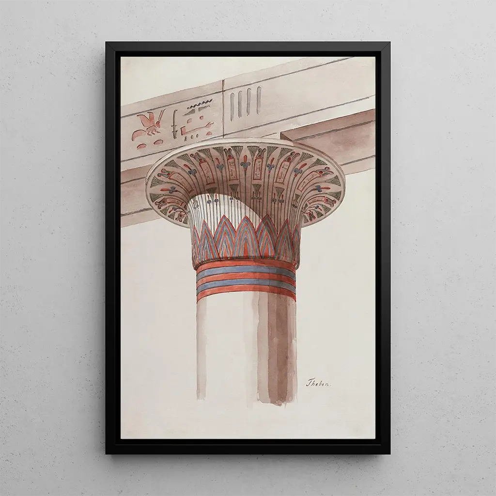 A Temple Capital from Thebes: A Testament to Ancient Architecture This art print of a temple capital from Thebes evokes the grandeur and sophistication of Egyptian architecture. The floral motifs and elegant lines testify to exceptional craftsmanship, while the natural colors recall the materials used in temple construction. The atmosphere conveyed by this piece is imbued with mystery and majesty, inviting the viewer to delve into the fascinating history of ancient Egypt. The finesse of the details and the precision of the forms make this canvas a true masterpiece, capturing the essence of antique art. Friedrich Maximilian Hessemer: An Explorer of Antiquity Friedrich Maximilian Hessemer, active in the 19th century, is an artist whose work is heavily inspired by antiquity. Passionate about architecture and Egyptian art, he was able to reproduce the magnificence of ancient monuments through his works. Hessemer traveled to Egypt, which allowed him to study closely the structures and motifs characteristic of this civilization. His artistic approach, blending precision and romanticism, contributed to making Egyptian architectural heritage more widely known, thus marking his importance in the history of art. A Decorative Acquisition with Multiple Assets The art print of "A Temple Capital from Thebes" is a decorative piece that will enrich your interior, whether in a living room, office, or library. Its print quality and attention to detail make it a captivating decorative element that draws the eye and sparks interest. By integrating this canvas into your space, you bring a touch of history and elegance, while celebrating Friedrich Maximilian Hessemer's art. This artwork is not only an aesthetic choice but also a tribute to the richness of Egyptian architectural heritage.