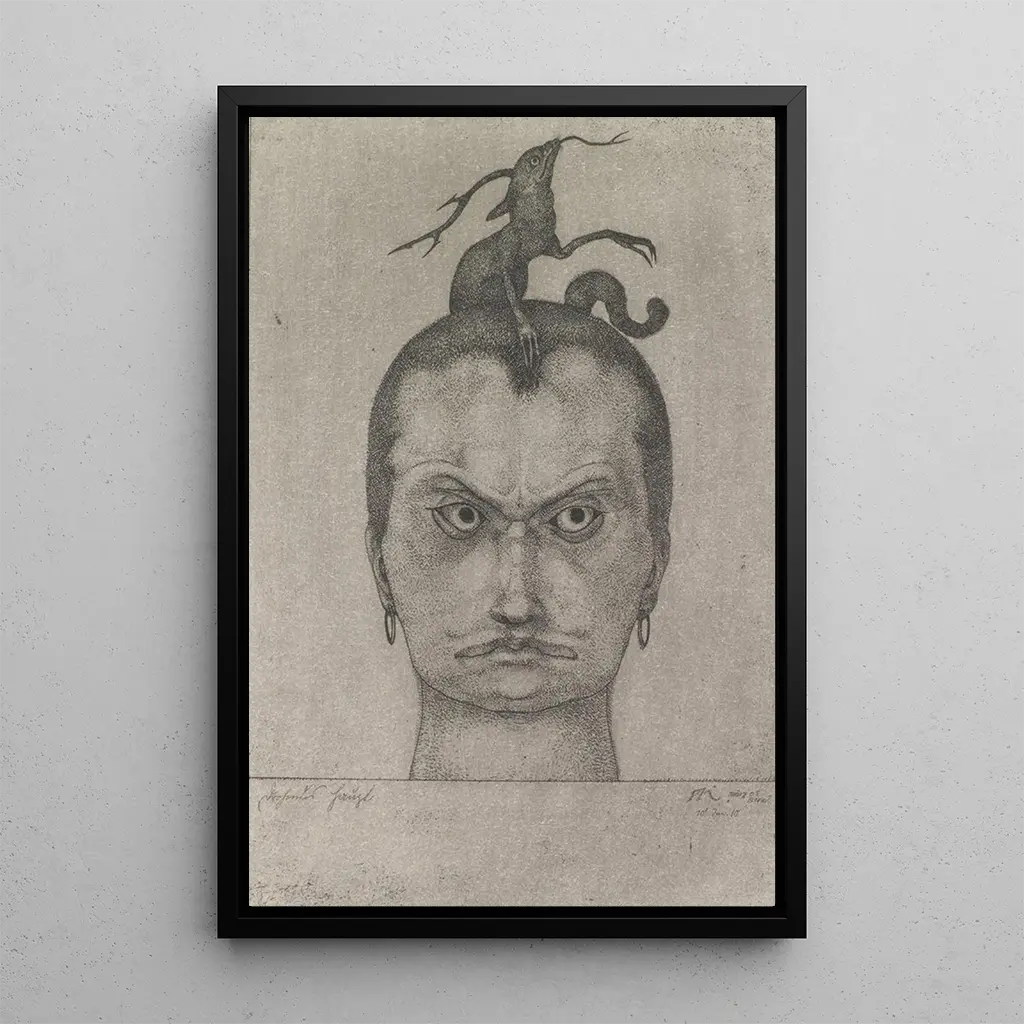 The reproduction of "Tête Menaçante" is a bold decorative choice that will enrich your living space. Whether in an office, a living room, or a bedroom, this art print will add a touch of originality and character to your decor. Its print quality and fidelity to the original artwork guarantee a strong visual impact. By integrating this piece into your interior, you give your walls a conversation-starting work that sparks curiosity and encourages exchanges, while adding an artistic dimension to your environment.