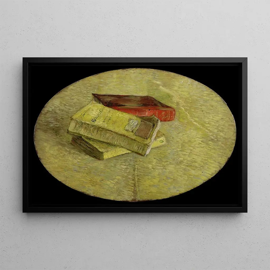 Vincent van Gogh, an emblematic figure of Post-Impressionism, left a lasting mark on art history with his unique style and intense vision. Active in the late 19th century, he transformed ordinary subjects into extraordinary works of art through his bold colors and innovative painting techniques. Influenced by the Impressionists and Neo-Impressionists, Van Gogh also explored themes such as solitude and the search for meaning. The art print of "Three Books" reflects his love for culture and his desire to share this passion with the world.