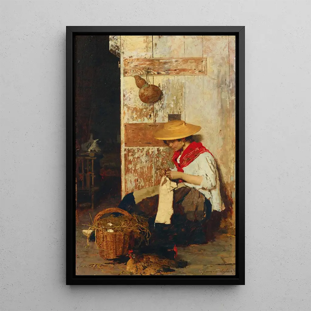 The art print of The Torn Channel, a poignant work by Giacomo Favretto, evokes the tumultuous beauty of coastal landscapes. This canvas, with its swirling waves and stormy sky, captures the very essence of the sea, both majestic and formidable. The shades of blue and gray blend harmoniously, creating an atmosphere of melancholy and contemplation. Favretto's technique, characterized by dynamic brushstrokes, brings the scene to life, allowing the viewer to feel the power of the natural elements.
