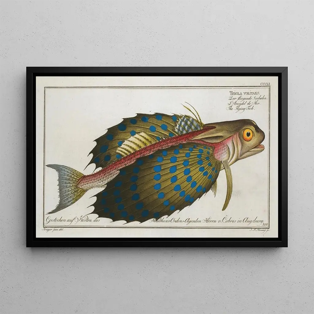 The art print of "Trigla volitans, the flying fish" is a decorative piece that will captivate attention in any space. Whether in an office, a game room, or even a kitchen, this piece adds a marine and lively touch to your decor. Its printing quality guarantees exceptional fidelity to the details of the original work, allowing you to appreciate every nuance and texture. By choosing this art print, you give your interior a touch of elegance and curiosity, while celebrating the beauty of aquatic life.