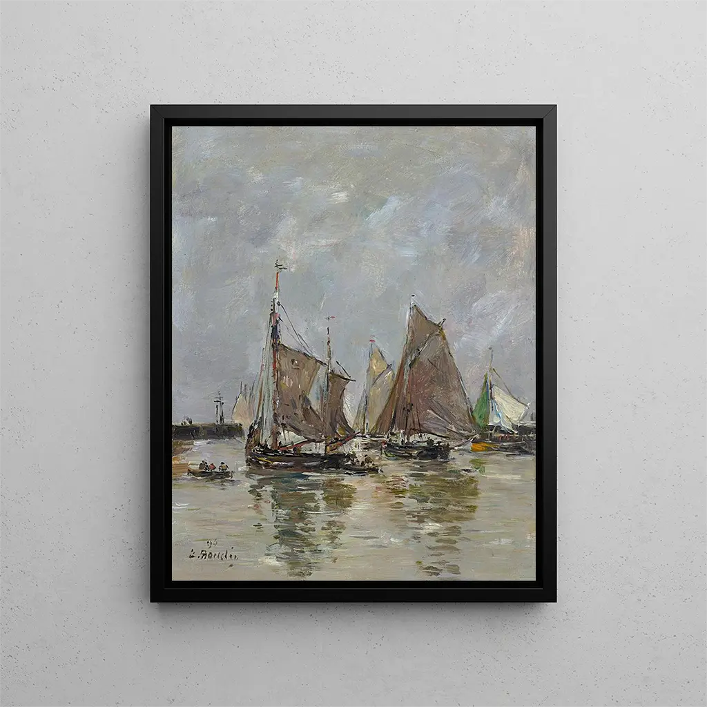 Trouville Art print, the sardine fishermen's rigging - Eugène Boudin – Captivating introduction The sea, with its wild beauty and infinite mysteries, has always been a source of inspiration for artists. Among them, Eugène Boudin, a pioneer of Impressionism, masterfully captured the essence of marine landscapes with a unique sensitivity. In his work "Trouville, the sardine fishermen's rigging," he transports us to the Normandy coast, where the movement of the waves blends with the hustle of the men. This painting, a true ode to maritime life, evokes an atmosphere that is both peaceful and lively, where the daily life of fishermen transforms into an almost poetic scene. Through this art print, viewers are invited to immerse themselves in a universe where time seems suspended, in vibrant harmony with nature. Style and uniqueness of the work The uniqueness of "Trouville, the sardine fishermen's rigging" lies in how Boudin plays with light and colors. The pastel shades, typical of his style, blend into a cloudy sky that hints at the sun's rays. The sails of the boats, white and radiant, contrast with the darker palette of the busy fishermen on the beach. This painting is not limited to depicting a simple fishing scene; it captures the soul of the Normandy coast, where salty air and the sound of waves create a lively atmosphere. The composition is carefully orchestrated, with each element finding its place to tell a story. The characters, though small in the landscape, seem animated by a palpable energy, bearing witness to their unbreakable connection with the sea. The artist and his influence Eugène Boudin, born in 1824, is often regarded as one of the pioneers of Impressionism. His work paved the way for artists such as Claude Monet and Pierre-Auguste Renoir, all of whom were influenced by his technique and vision. Boudin, as a keen observer of nature, always sought to capture the nuances of landscapes and skies in constant evolution. His innovative approach to plein air painting allowed him to seize light and atmosphere in a way