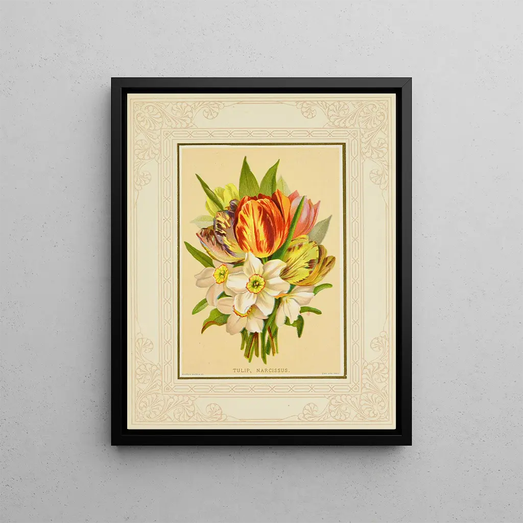 Reproduction with 'Tulip, narcissus', Marcus Ward & Co. celebrates the beauty of flowers through a vibrant and colorful art print. Every detail is carefully rendered, highlighting the richness and diversity of flora. This work, emblematic of the 19th century, evokes a time when floral representations were highly valued in interior decoration. In a modern setting, this piece can bring a touch of freshness and nature, while enriching the space with its elegance. Exploring this work on Artem Legrand means immersing yourself in the ephemeral beauty of nature, elevated by art. Captivating introduction The art print 'Tulip, narcissus' stands as a vibrant tribute to flora, capturing the very essence of natural beauty. Through vivid colors and meticulously detailed work, this piece invites the viewer to dive into a universe where nature is queen. The 19th century, a period of great artistic vitality, saw flowers become favored subjects, both in art and decoration. Floral representations are not only aesthetic; they also evoke emotions, memories, and a deep connection with nature. In a modern world often driven by frenzy, this art print offers a contemplative pause, a moment of serenity where one can admire the fleeting perfection of flowers. Style and uniqueness of the work The style of 'Tulip, narcissus' is characterized by striking realism. Every petal, every leaf is rendered with precision that reflects the artist's craftsmanship. The art print stands out with its palette of vivid colors, evoking joy and vitality of nature. The flowers seem almost alive, ready to bloom with the breeze. This attention to detail and mastery of colors are elements that make this work a true masterpiece. Moreover, the balanced and harmonious composition allows each element to flourish without ever overpowering the others, creating a captivating visual dynamic. It is this singularity that allows the art print to transcend time, establishing itself as a must-have in the realm of floral art. The artist and their influence Marcus Ward & Co. is not just a name, but a