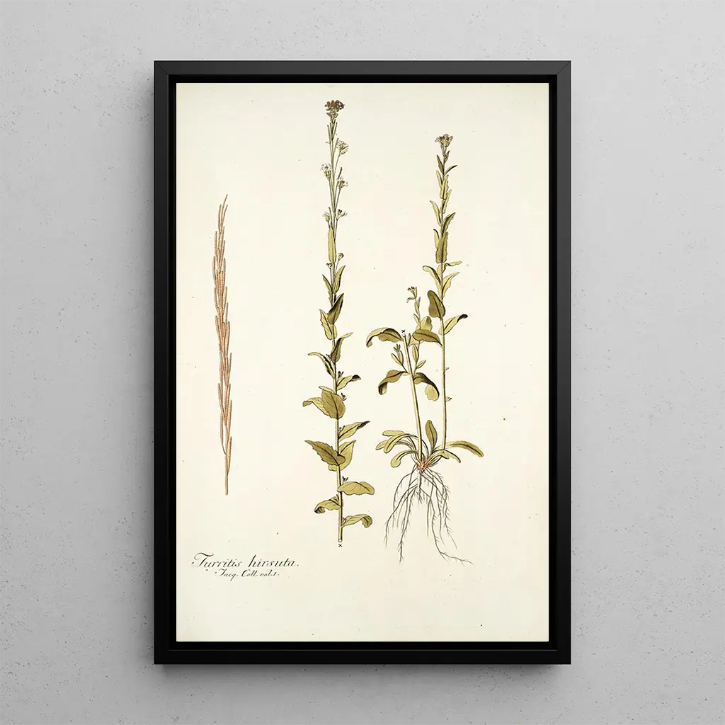 Turritis hirsuta: a timeless floral art print The art print of "Turritis hirsuta" by Nikolaus Joseph Freiherr von Jacquin reveals the delicate beauty of this plant. With its slender stems and white flowers, the piece is a true ode to nature. The shades of green and white harmonize to create a soothing atmosphere, while the precision of the details highlights every aspect of the plant. This canvas invites contemplation and appreciation of botanical wonders, capturing the very essence of flora. Nikolaus Joseph Freiherr von Jacquin: a master of botanical illustration Nikolaus Joseph Freiherr von Jacquin, active in the 18th century, is recognized for his significant contributions to botany and scientific illustration. His travels across Europe and beyond allowed him to discover and document a multitude of plants, including "Turritis hirsuta". His artistic approach, blending meticulous observation with refined aesthetics, influenced many botanists and artists. Jacquin mastered combining science and art, making his works references in the field of botanical illustration. A decorative acquisition with multiple advantages The art print of "Turritis hirsuta" is a perfect choice to enhance your interior decor. Whether in an office, a living room, or a bedroom, this canvas adds a touch of freshness and sophistication. Its printing quality guarantees color fidelity and detail, making this piece a true focal point. By choosing this art print, you give your space a serene and inspiring ambiance, while paying tribute to the artistic legacy of Nikolaus Joseph Freiherr von Jacquin.