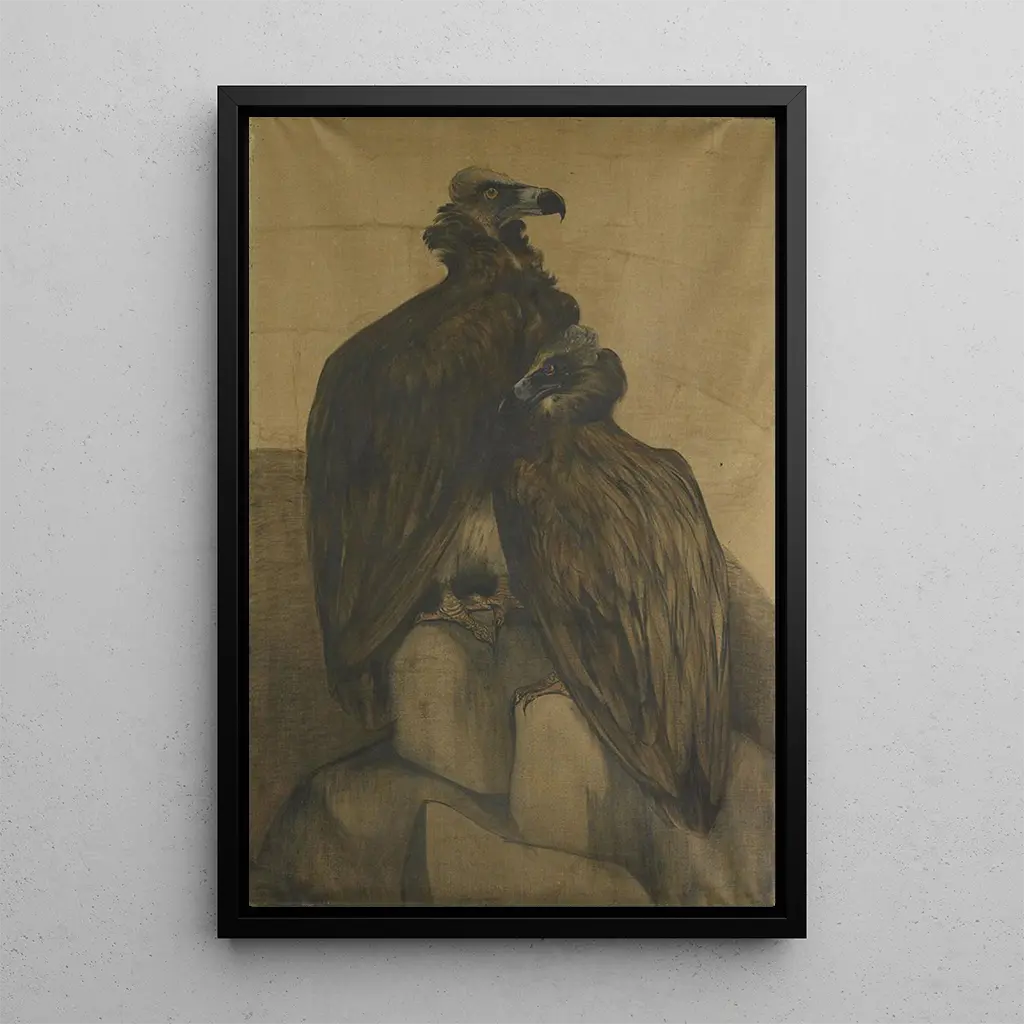 Two Arabian Vultures: A Majestic Dance in the Skies In "Two Arabian Vultures," Theo van Hoytema captures the grace and power of these majestic birds. The composition highlights earthy tones and shades of blue that evoke a serene sky. The artist's technique, blending watercolor and drawing, creates an atmosphere that is both realistic and poetic. The vultures, with their wings outstretched, seem to float in space, offering a fascinating view of nature. Every detail, from the feathers to the shadows, is carefully crafted, inviting the viewer to contemplate the beauty of these often misunderstood creatures. Theo van Hoytema: a pioneer of naturalist observation Theo van Hoytema, born in 1863 in the Netherlands, is renowned for his unique approach to animal representation. Influenced by the naturalist movement, he managed to combine scientific precision with artistic sensitivity. His works, mainly created between the late 19th and early 20th centuries, reflect an era when art and science converged. Hoytema often explored fauna and flora, seeking to capture the very essence of his subjects. His ability to observe and reproduce nature has made him an essential artist, whose legacy endures through his art prints. A decorative acquisition with multiple assets The art print of "Two Arabian Vultures" is an ideal decorative piece to enrich your interior, whether in a living room, office, or bedroom. Its print quality guarantees exceptional fidelity to the details of the original artwork, while adding a touch of natural elegance to your decor. This artwork draws the eye and sparks conversations, thanks to its captivating aesthetics and fascinating subject. Treat yourself to this canvas to create a serene and inspiring atmosphere, while celebrating the beauty of nature through art.