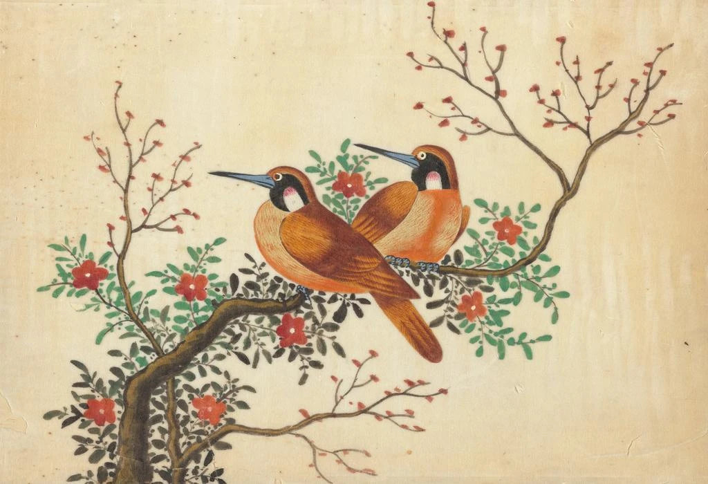 The work "Two birds on a flowering tree branch" is attributed to an anonymous artist, highlighting the importance of folk art throughout the centuries. This type of painting, often created by local artists, demonstrates sensitivity to nature and daily life. At a time when nature was often idealized, these simple and accessible representations managed to touch the hearts of art enthusiasts. The artist's anonymity does not diminish the value of the piece, which continues to evoke emotions and memories in those who contemplate it.