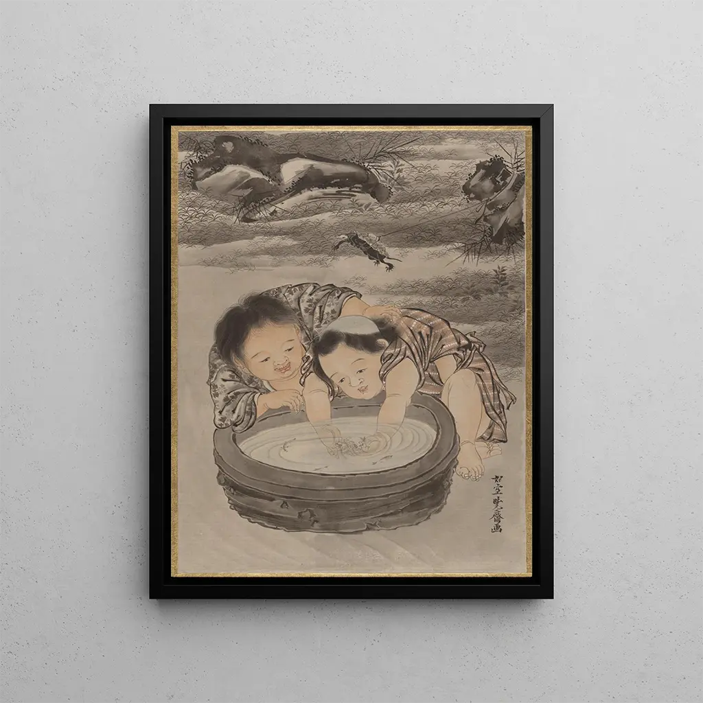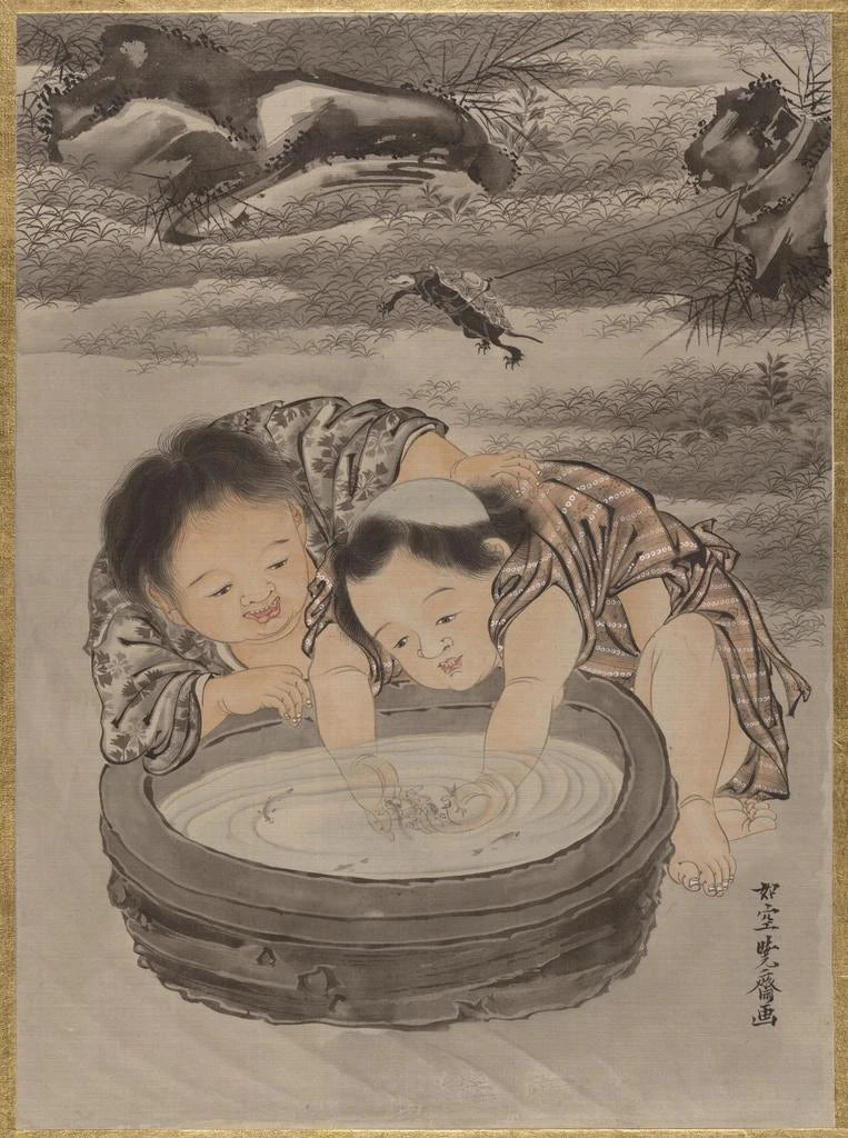 Two children playing with goldfish - Kawanabe Kyōsai