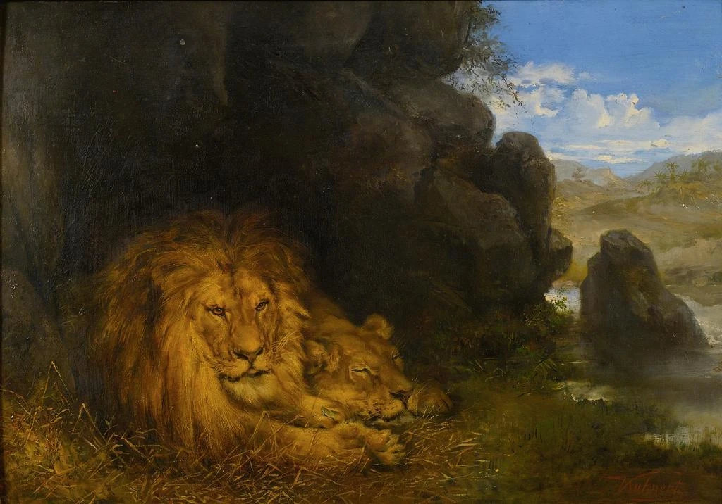 Art print | Two lions in a cave - Wilhelm Kuhnert