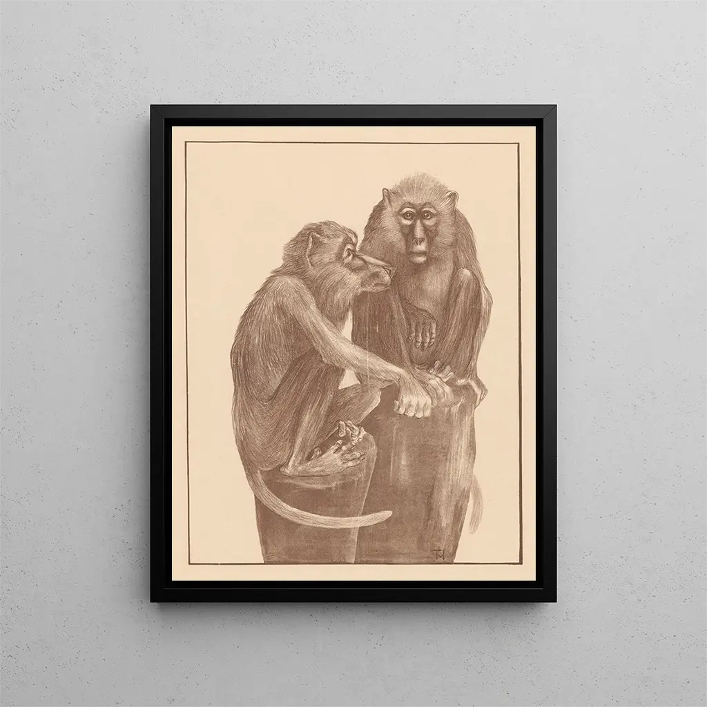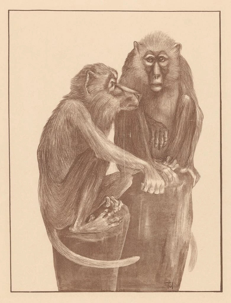 Two monkeys dogs on tree stumps - Theo van Hoytema