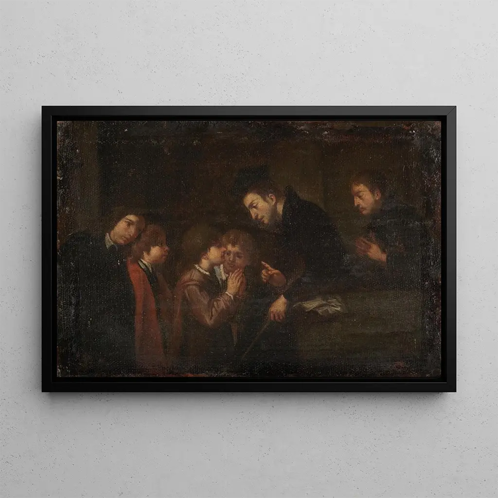 Spiritual Boys Teaching: A Meeting Between the Sacred and the Everyday In this captivating artwork, "Spiritual Boys Teaching," Pasquale de Rossi immerses us in a universe where spirituality blends with the simplicity of daily life. The two young figures, dressed in traditional robes, are depicted with expressions filled with wisdom and curiosity. The warm, earthy colors, typical of the artist's palette, create a soothing atmosphere, while the soft light subtly illuminates their faces, emphasizing their role as teachers. The balanced composition invites the viewer to reflect on the nature of learning and the transmission of knowledge. Pasquale de Rossi: a Master of Italian Baroque Pasquale de Rossi, active in the 17th century, is a often overlooked artist who captured the essence of his era through his art. Influenced by the Baroque movement, he developed a style characterized by meticulous details and poignant expressiveness. Trained in the workshops of the great masters of his time, he integrated elements of Flemish and Italian painting, enriching his work. Although less famous than his contemporaries, his work deserves rediscovery, as it offers a valuable insight into the spirituality and values of society in his time. A decorative acquisition with multiple assets The art print of "Spiritual Boys Teaching" is a decorative piece that will enhance your interior, whether in a living room, office, or bedroom. Thanks to its quality reproduction, it preserves the finesse of the details and the harmony of the colors of the original, while adding a touch of elegance and serenity to your space. This artwork, through its subject and aesthetic, invites reflection and contemplation, making it an ideal choice for those who appreciate art and spirituality in their decor.
