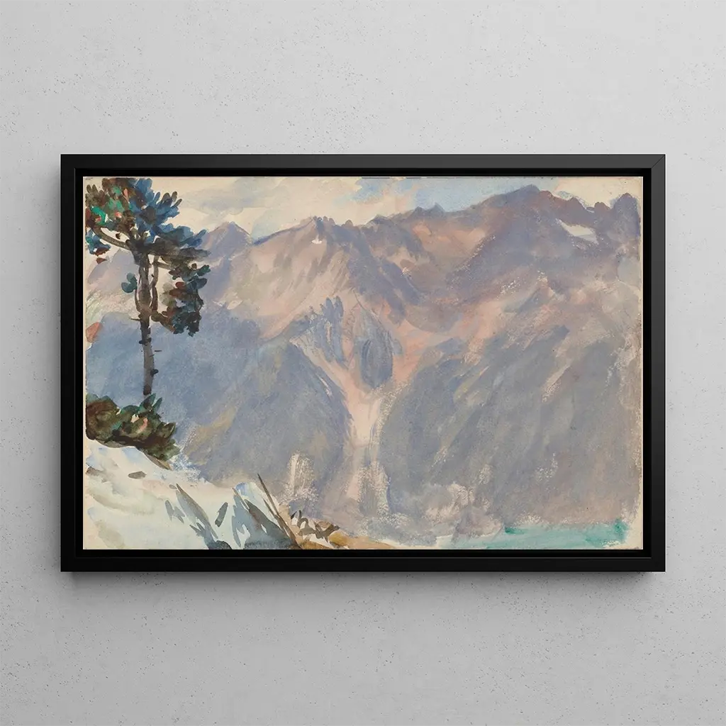 In this captivating artwork, John Singer Sargent transports us to the heart of the Tyrolean Alps, where nature unfolds in all its splendor. The majestic mountains, bathed in soft light, are reflected in a sky of azure, creating a peaceful and contemplative atmosphere. The color palette, blending deep greens and vibrant blues, evokes the freshness of mountain landscapes. Sargent's technique, characterized by fluid and expressive brushstrokes, brings this canvas to life, inviting the viewer to immerse themselves in this enchanting scene. Every detail, from the trees to the clouds, seems to vibrate with a tranquil energy, making this art print a true call to escape.