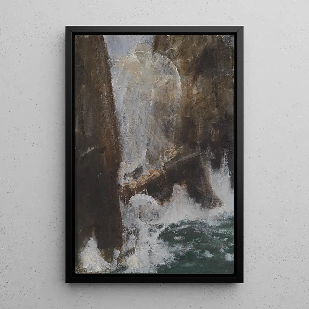 The art print of "Errance d'Ulysse" by Adolf Hirémy-Hirschl transports us to the heart of the mythological adventures of the Greek hero. The canvas, rich in vibrant colors and narrative details, depicts a key moment from Homer's story, where Ulysses faces maritime trials. The tumultuous waves and dramatic landscapes create an atmosphere of tension and mystery, while the characters are portrayed with poignant expressiveness. This piece invites us to explore themes of quest, resilience, and self-discovery.