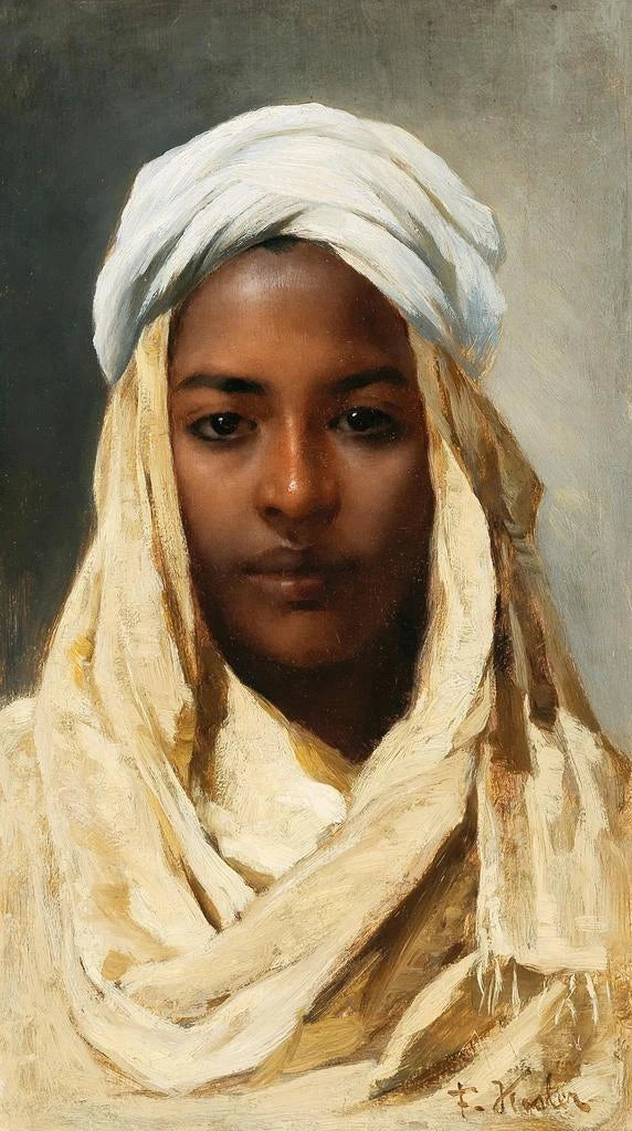 The art print "A Bedouin" immerses us in the fascinating world of desert nomadic peoples. This painting, rich in earthy colors and textures, captures the essence of a man in harmony with his environment. The shades of brown and ochre evoke the warmth of sand, while the details of the Bedouin's traditional costume tell a story of culture and tradition. The atmosphere conveyed by this work is both mysterious and soothing, inviting the viewer to explore the life stories hidden behind this face marked by time.