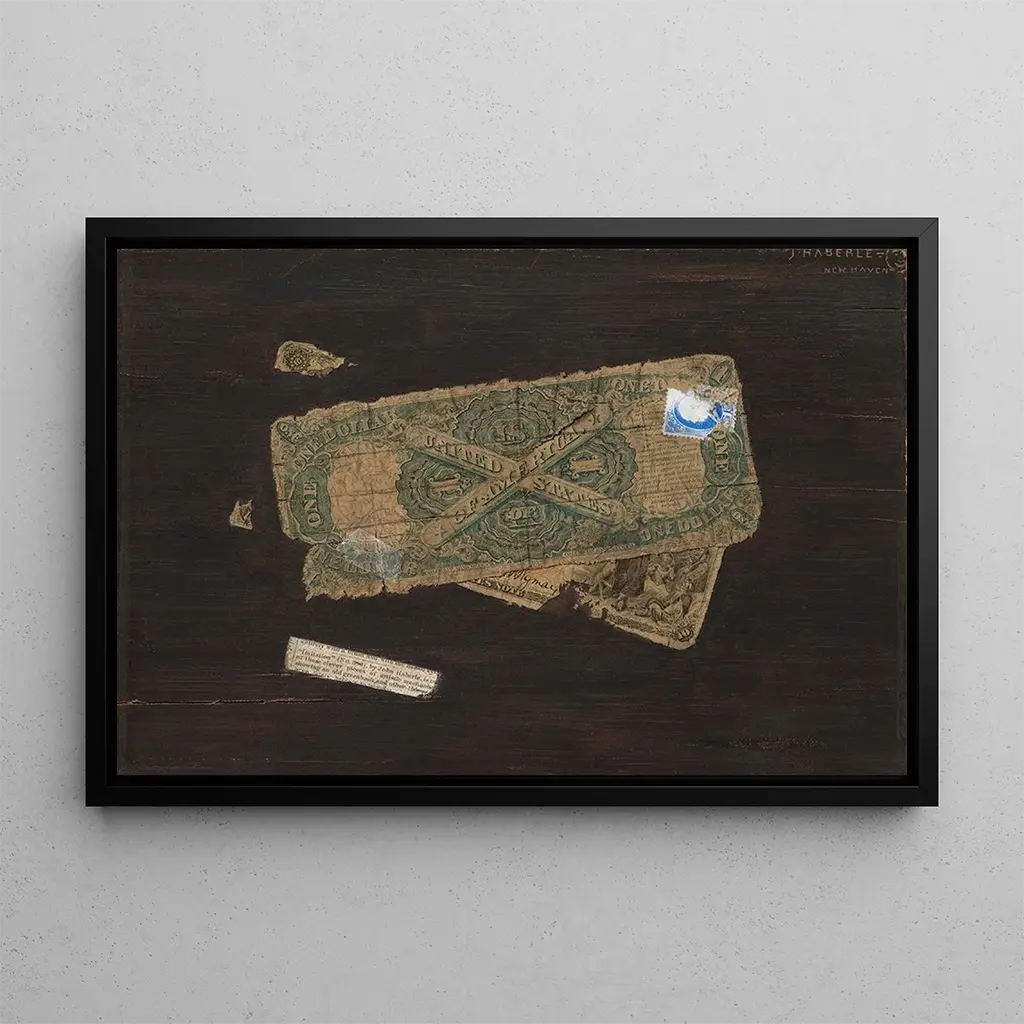John Haberle, an American artist active at the end of the 19th century, is renowned for his skill in creating trompe-l'œil works. Influenced by realism and the Impressionist movement, he captured scenes of daily life with remarkable precision. His career, though relatively short, left an indelible mark on the history of American art. Themes of consumption and national identity recur in his work, reflecting the social changes of his time. The art print United States is a perfect example of his talent, blending technique and social critique.
