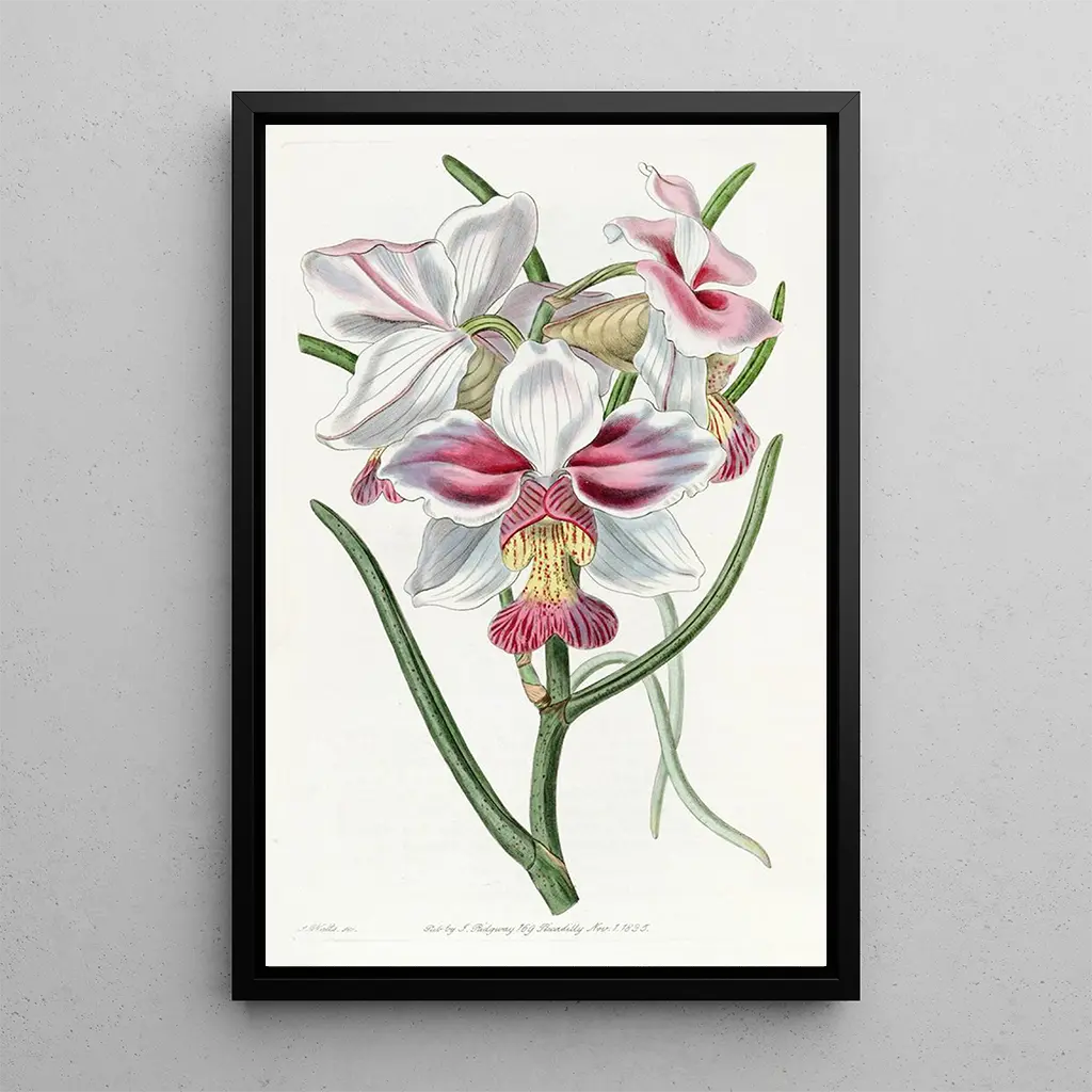 The reproduction of Vanda with tapered leaves is a perfect choice to enrich your interior decoration, whether in a living room, office, or bedroom. The print quality ensures remarkable fidelity to the colors and details of the original artwork, bringing a touch of nature and elegance to your space. This art print by Sydenham Edwards is sure to attract attention and spark curiosity, transforming your interior into a haven of peace inspired by the beauty of tropical flora.