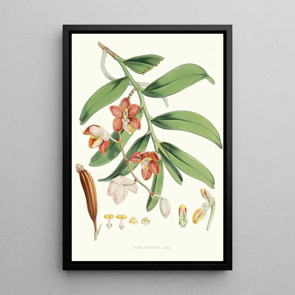 Vanda Cathcarti Lindley : a floral delicacy to admire The art print of Vanda Cathcarti Lindley, a work by Walter Hood Fitch, is a celebration of the delicate beauty of orchids. This painting highlights flowers with vibrant hues, ranging from violet to white, with touches of yellow that brighten the composition. Fitch, with his technical mastery, manages to capture the velvety texture of the petals and the finesse of the details, creating an atmosphere that is both gentle and captivating. Each element of this artwork invites wonder, revealing the complexity and elegance of this rare orchid species. Walter Hood Fitch : a master of botanical art Walter Hood Fitch, a 19th-century botanical illustrator, played a crucial role in documenting exotic plants through his art. Influenced by the botanical explorations of his time, he knew how to combine scientific precision with artistic sensitivity. Fitch collaborated with renowned botanists and illustrated numerous species, thus contributing to the knowledge of plants. His work on orchids, in particular, has been praised for its ability to capture the beauty and diversity of these flowers. His legacy endures, making him an iconic figure in botanical illustration. A decorative acquisition with multiple assets The art print of Vanda Cathcarti Lindley is an undeniable decorative asset for any space. Whether in an office, a living room, or a bedroom, this canvas adds a touch of sophistication and nature. Its printing quality guarantees exceptional fidelity to the original work, allowing you to appreciate every detail with clarity. By integrating this piece into your decor, you create a soothing and elegant atmosphere, while paying tribute to botanical art and the beauty of orchids.