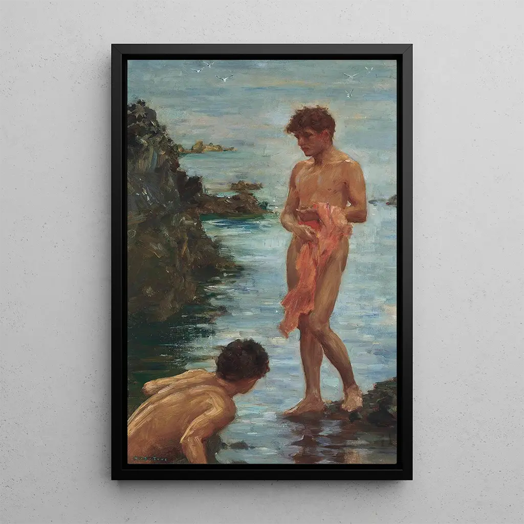 Henry Scott Tuke, a British painter active in the late 19th and early 20th centuries, is renowned for his depictions of coastal life and young men outdoors. Influenced by Impressionism and the Pre-Raphaelite movement, Tuke captured the beauty of nature and the sensuality of his models. His works, often inspired by the Cornwall region, reflect a time when art and everyday life intertwined. Exploring themes of youth, freedom, and natural beauty, Tuke left a lasting legacy in the art world, celebrating the simple joy of existence.