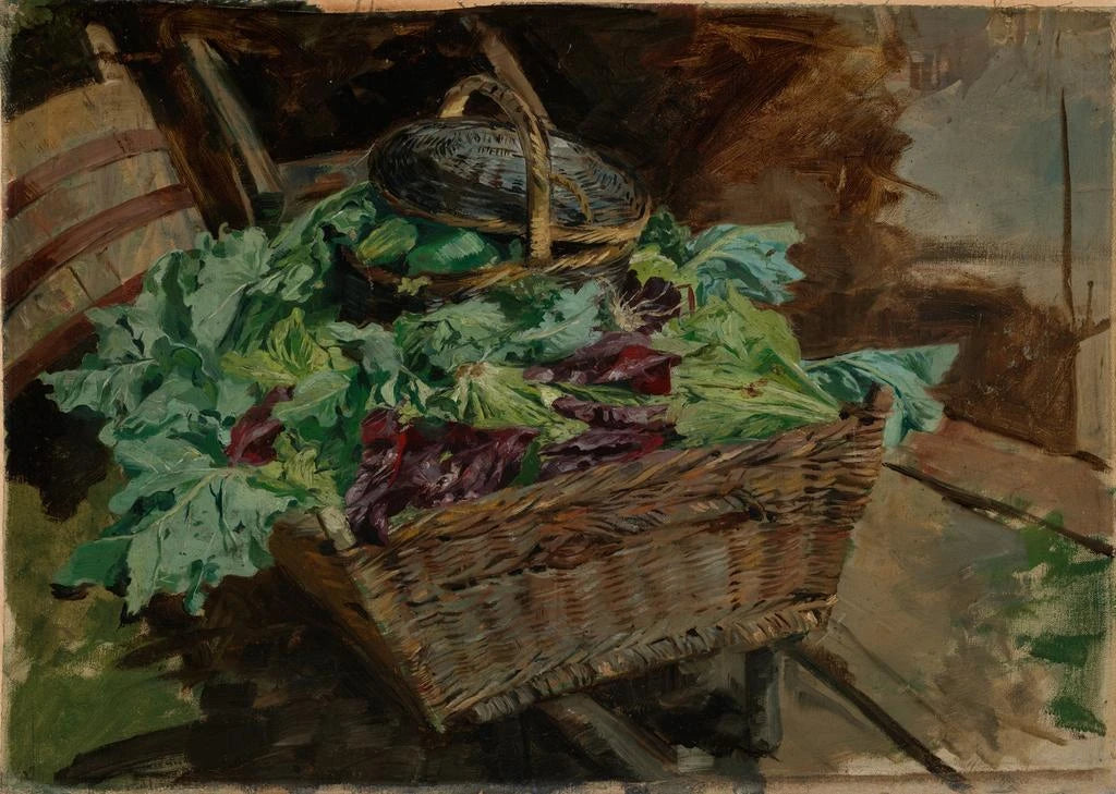 The art print of "Panier de légumes" by Fritz Boehle evokes a vibrant celebration of nature and its blessings. In this work, the vegetables, carefully arranged, seem almost tangible, thanks to the painting technique that highlights textures and vivid colors. Deep greens, bright reds, and golden yellows harmoniously coexist, creating a composition that is both rich and balanced. The atmosphere emanating from this canvas is one of joyful abundance, inviting the viewer to appreciate the simple beauty of earth's produce.