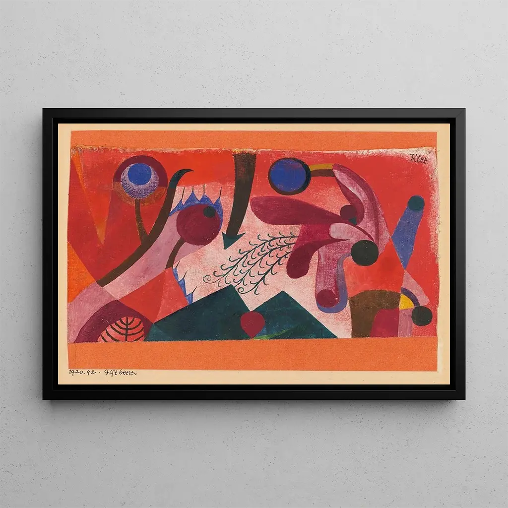 Paul Klee, Swiss artist born in 1879, is renowned for his unique approach to color and form. Influenced by Cubism, Expressionism, and folk art, Klee developed a distinctive style that transcends artistic boundaries. Active during the first half of the 20th century, he was a member of the Bauhaus, where he experimented with color theory and artistic pedagogy. His works, often imbued with poetry and mystery, reflect a deep understanding of the human soul and nature. This art print of "Poisonous Berries" bears witness to his lasting legacy in modern art.