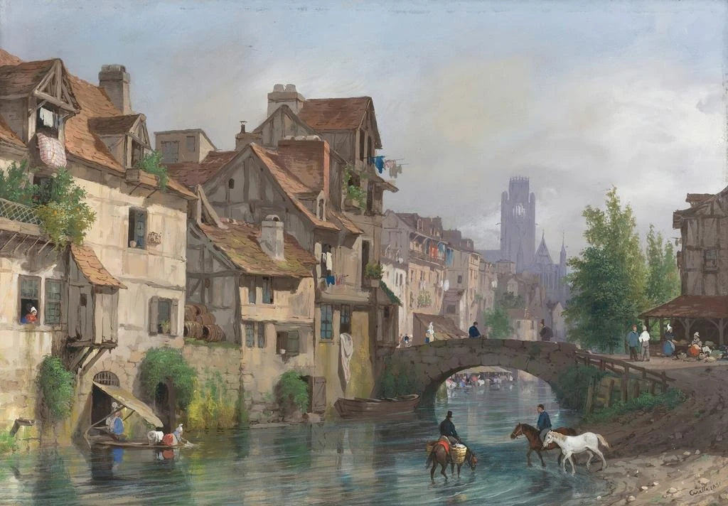 Giuseppe Canella's art print of the Vue de Rouen offers an immersive experience into the timeless charm of this Norman city. The pastel hues, blending shades of blue and pink, evoke a soft and dreamy atmosphere. The oil painting technique captures the reflections of light on the historic buildings and the Seine River, creating a sense of depth and movement. Canella manages to capture the essence of Rouen, with its picturesque alleys and iconic monuments, inviting viewers to stroll through its urban landscapes. Giuseppe Canella: a 19th-century artist dedicated to landscape art print. Giuseppe Canella, active in the 19th century, was an Italian painter whose work focused on urban landscapes and scenes of daily life. Influenced by Romanticism, he sought to express the beauty of cities through delicate compositions and harmonious color palettes. His ability to capture the light and atmosphere of a place made him a respected artist of his time. Canella successfully immortalized iconic cities, including Rouen, adding a personal touch that reflects his love for architectural beauty and the surrounding nature. A decorative art print with multiple advantages. The art print of the Vue de Rouen is a decorative piece that will seamlessly integrate into various living spaces. Whether in a living room, office, or bedroom, this canvas will add a touch of elegance and serenity. Its printing quality ensures faithful reproduction of the colors and details of the original work, allowing you to enjoy its beauty daily. With its peaceful ambiance and delicate nuances, this piece will appeal to art lovers and history enthusiasts alike, while enhancing your interior with charm and sophistication.