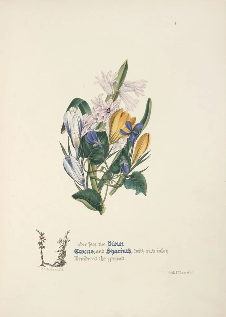 Painting Violette crocus et jacinthe - Jane Elizabeth Giraud | Art print