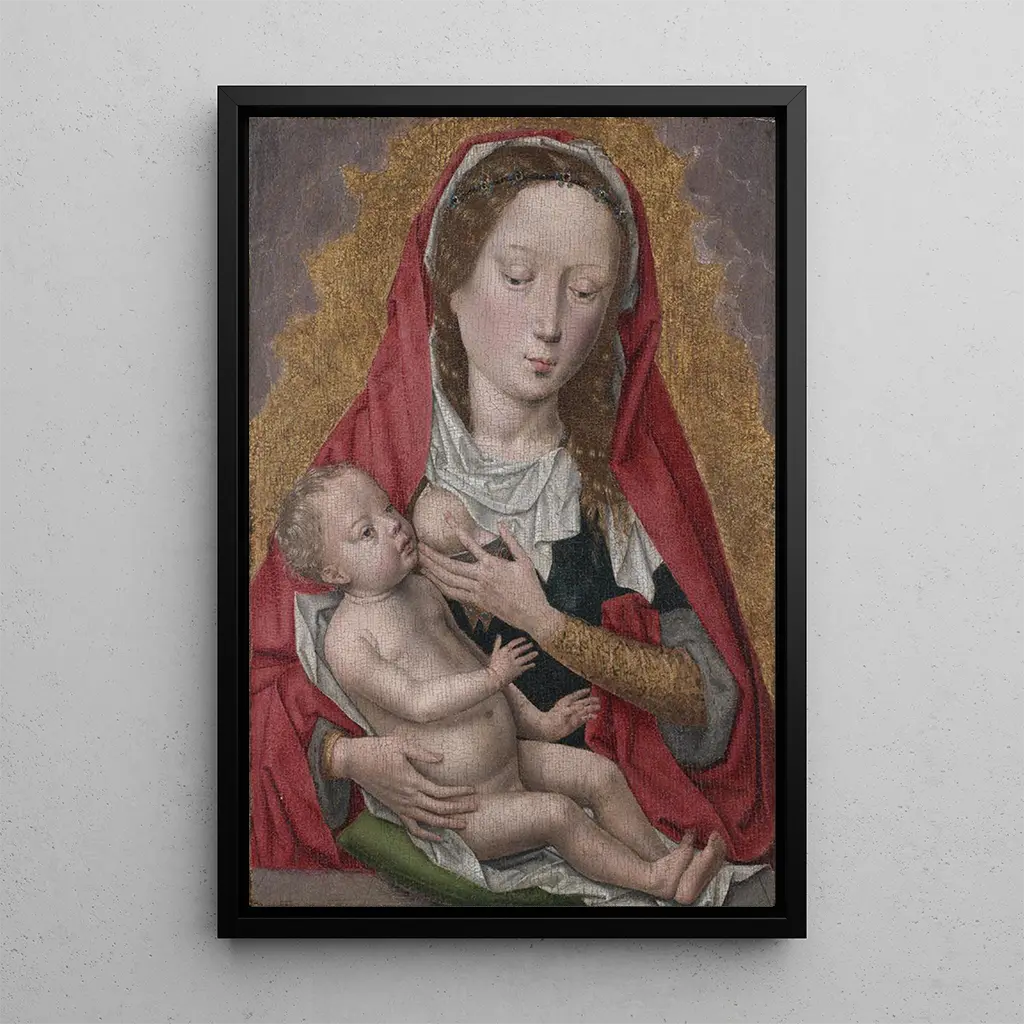 In "Vierge à l'Enfant", Hans Memling offers us a touching representation of sacred motherhood. The composition, centered on the Virgin and her child, exudes an atmosphere of gentleness and serenity. The pastel colors, delicate and harmonious, create a sense of peace, while the soft light highlights the faces filled with tenderness. Memling's technique, which combines realism and spirituality, allows us to feel the unconditional love that unites mother and child, making this art print a true hymn to motherhood.