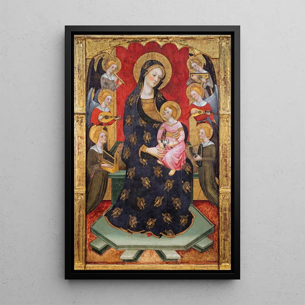 Virgin of the Angels: an artwork imbued with serenity The Virgin of the Angels, an emblematic art print by Pere Serra, evokes an atmosphere of peace and devotion. The delicate composition highlights the figure of the Virgin, surrounded by angels with gentle and benevolent expressions. The pastel colors, blending shades of blue and pink, create a visual harmony that invites contemplation. The oil painting technique, mastered by the artist, allows for remarkable detail in the faces and drapery. The overall scene emits a soft light, reinforcing the idea of a calming divine presence. Pere Serra: a master of religious art print Pere Serra, active during the 15th century, is recognized for his talent in depicting religious subjects. Influenced by Renaissance artistic currents, he skillfully integrated elements of realism and spirituality into his works. His training with Italian masters enriched his style, enabling him to explore various themes while remaining faithful to his Catalan roots. The Virgin of the Angels demonstrates his ability to capture the essence of Christian faith, making him an important figure in the history of Spanish religious art print. A decorative acquisition with multiple advantages The art print of the Virgin of the Angels is an ideal decorative piece to bring a touch of serenity to your interior. Whether in a living room, office, or bedroom, this artwork integrates harmoniously into various decorating styles. Its printing quality guarantees fidelity to the details of the original work, while offering undeniable aesthetic appeal. By choosing this canvas, you opt for a piece that not only enhances your space but also evokes an atmosphere of peace and spirituality.