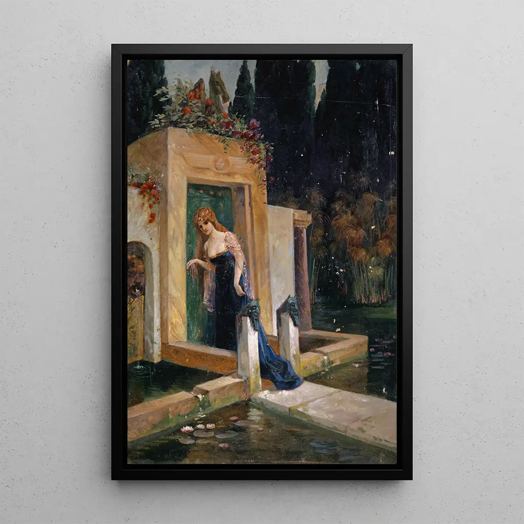 Viviane at Merlin's Tomb: a moment of mystery and magic The art print of Viviane at Merlin's Tomb transports us into a world filled with legends and mysteries. This captivating piece, rich in dark colors and dazzling lights, evokes an atmosphere that is both melancholic and enchanting. The pictorial technique, which plays on contrasts, highlights the expressions of the characters and the enchanting setting that surrounds them. Viviane, the central figure, appears both sad and determined, embodying the duality of love and loss within a mythical framework. Johann Jakob Schneider: an artist at the heart of romanticism Johann Jakob Schneider, active in the 19th century, is a painter whose work is part of the romantic movement. Influenced by tales and legends, he captured the essence of mythological stories through his paintings. Schneider explored themes such as love, nature, and the fantastic, which allowed him to stand out in the artistic landscape of his time. His works, often imbued with poetry, reflect a deep sensitivity and an aesthetic pursuit that still resonate today. A decorative acquisition with multiple assets The art print of Viviane at Merlin's Tomb is a fascinating decorative piece, ideal for enriching the ambiance of a living room, office, or bedroom. Its print quality and fidelity to the original work make it a popular choice among art enthusiasts. With its evocative aesthetic, this canvas adds a touch of mystery and magic, inviting dreaming and escapism, while harmoniously fitting into various interior decoration styles.