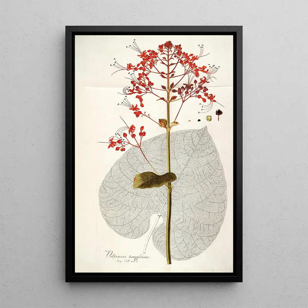 This art print of the Volkameria kaempferi painting is an ideal decorative piece to enrich your interior, whether in a living room, an office, or a bedroom. Its print quality and fidelity to the original colors guarantee undeniable aesthetic appeal. By adding this piece to your decor, you bring a touch of nature and elegance to your space, while celebrating the artistic heritage of Nikolaus Joseph Freiherr von Jacquin. This tableau, both educational and decorative, will appeal to botany and art enthusiasts, making your interior a place of inspiration and beauty.
