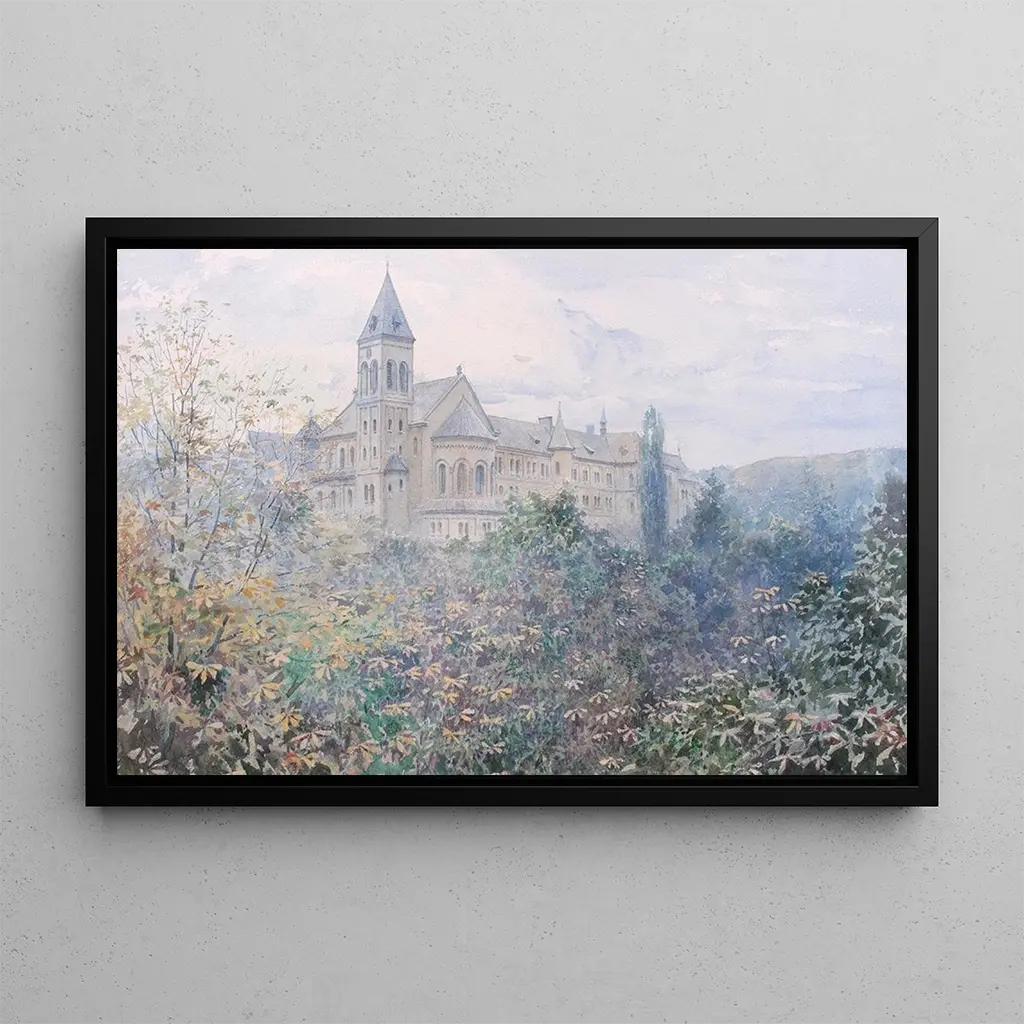 The art print Vue of the Castle by Václav Jansa transports the viewer into a fairy-tale landscape, where majestic architecture stands proudly amidst lush nature. The soft colors and meticulous details of this canvas evoke a peaceful and nostalgic atmosphere. Jansa, with his talent for capturing light and shadow, creates a harmonious composition that invites contemplation. Every element of the scene, from the sky to the trees, contributes to the visual balance, making this piece a true artistic gem.