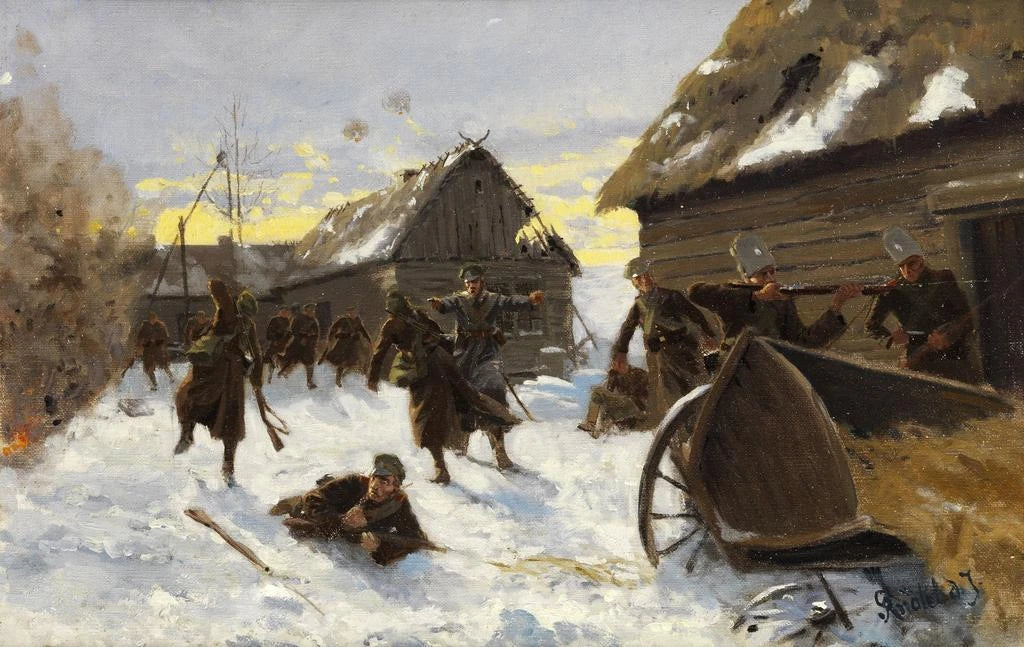 The art print of "War Battle in a Snowy Village" is a decorative piece that will enrich your interior, whether in a living room, office, or bedroom. Its printing quality guarantees remarkable fidelity to the details of the original work, while adding a touch of elegance and character to your decor. This art print not only evokes history but also offers a reflection on human nature, making it a fascinating conversation piece. The aesthetic appeal of this canvas makes it an ideal choice for those who appreciate military art and wish to add a note of authenticity to their space.