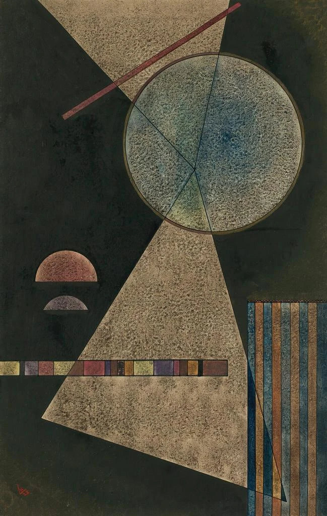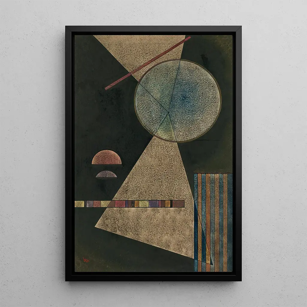 Wassily Kandinsky's Point de rencontre is a captivating artwork that explores the interaction between shapes and colors. This canvas, rich in nuances, evokes a visual dialogue where each element seems to respond to the others in a delicate harmony. Circles, lines, and colors intertwine to create a dynamic composition, almost musical. The atmosphere emanating from this piece is both energetic and soothing, inviting the viewer to immerse themselves in an abstract world where intuition and emotion take precedence over tangible reality.