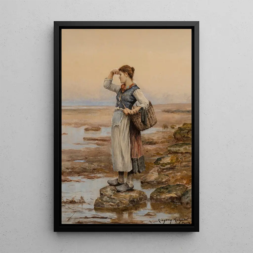 Water Carriers: A Tribute to Female Strength In "Water Carriers," Daniel Ridgway Knight delicately depicts the lives of women transporting water, a vital and symbolic element. The canvas reveals several female figures, each carrying jars on their heads, illustrating strength and resilience. The warm, earthy colors, combined with touches of light, create a vibrant and dynamic atmosphere. Knight's technique, blending realism and impressionism, allows viewers to feel the movement and energy of this everyday scene. This art print is a celebration of rural life and the hardworking women. Daniel Ridgway Knight: A Witness to Rural Life Daniel Ridgway Knight, active in the late 19th century, is often associated with the realist movement. Trained in Paris, he was influenced by the masters of impressionism, which is reflected in his luminous palette and lively compositions. His works, such as "Water Carriers," highlight the lives of peasants and women, emphasizing their essential role in society. By capturing moments of daily life, Knight immortalized the beauty of simple gestures and the dignity of work, making him an iconic figure of his era. A decorative reproduction with multiple assets The art print of "Water Carriers" is a decorative piece that will enrich your living space. Whether in a living room, office, or bedroom, this canvas adds a touch of elegance and dynamism. Its printing quality guarantees fidelity to the colors and details of the original artwork, while offering undeniable aesthetic appeal. By choosing this art print, you add not only a decorative element but also a story and depth to your interior, turning each glance into a moment of contemplation.