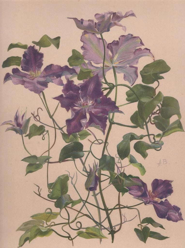 Art print | Watercolor of a climatite with large flowers - Alice Bailly
