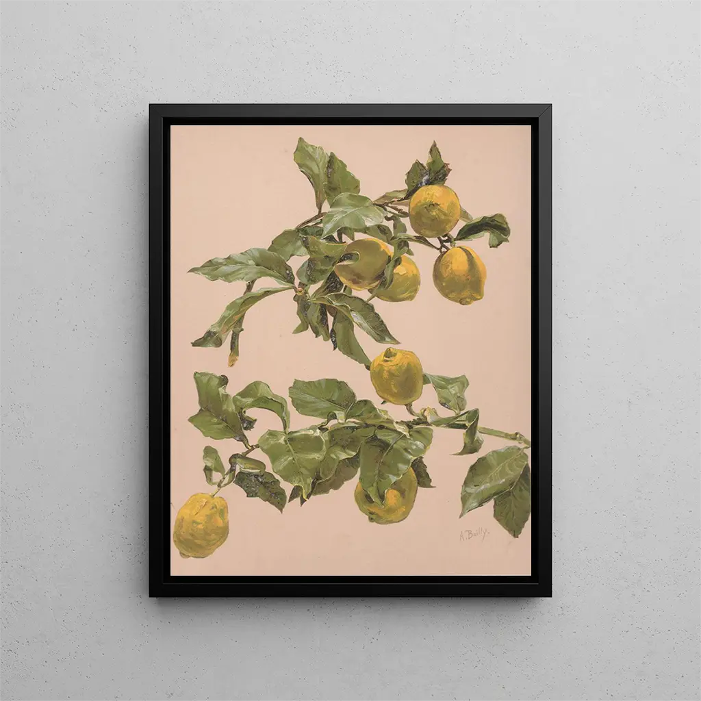 Alice Bailly, an emblematic figure of the modernist movement, knew how to mark her era with her innovative approach to painting. Influenced by cubist and fauvist currents, she developed a style that is uniquely her own, combining abstraction and representation. Her work is part of a constant search for light and color, characteristic of her artistic journey. Bailly transcended the conventions of her time, offering a singular vision of nature and everyday life. Her commitment to modernity and her desire to capture the essence of things make her an essential artist, whose influence still endures today. The art print of a lemon tree watercolor by